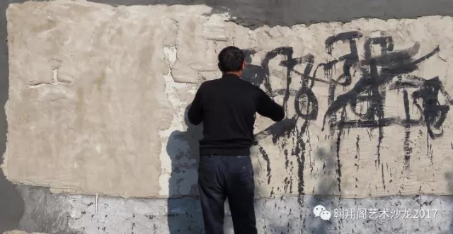 鋪完第一遍水泥,明天就要鋪第二遍水泥了,我的刻繪工作就要在第二層的水泥上創(chuàng)作。由于水泥的可塑時間段是有限制的,最佳時間是在一小時到兩小時之間。由于我平時在紙上創(chuàng)作,從來不打底稿,我非常享受那種無法預料結局的探險的過程。這次創(chuàng)作,出于安全的考慮,我已經在紙上畫了幾張設計稿。但我一點都不想用設計好的底稿,我期待意外,期待激情,期待駕馭那隨時出現(xiàn)的不可預料與驚喜。正因為這些原因,還有工人的配置及工程進展的不確定性,使得24日的工作變得非常富有挑戰(zhàn)性。我只能努力調整好自己,用積極的態(tài)度迎接明天的挑戰(zhàn)。