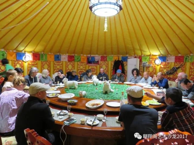 這是園區(qū)給我們安排的吃飯的蒙古包,剛好能把團隊的所有人員容納下。每天,我們都邊吃邊聊,溝通彼此的創(chuàng)作,閑聊彼此的生活。這是一個溫暖有愛、互助合作、彼此促進的有品質的團隊。全體隊員的高效協(xié)作和高水平發(fā)揮,以及這樣的其樂融融的場面,將在每一位隊員的生命里留下深深的印記。