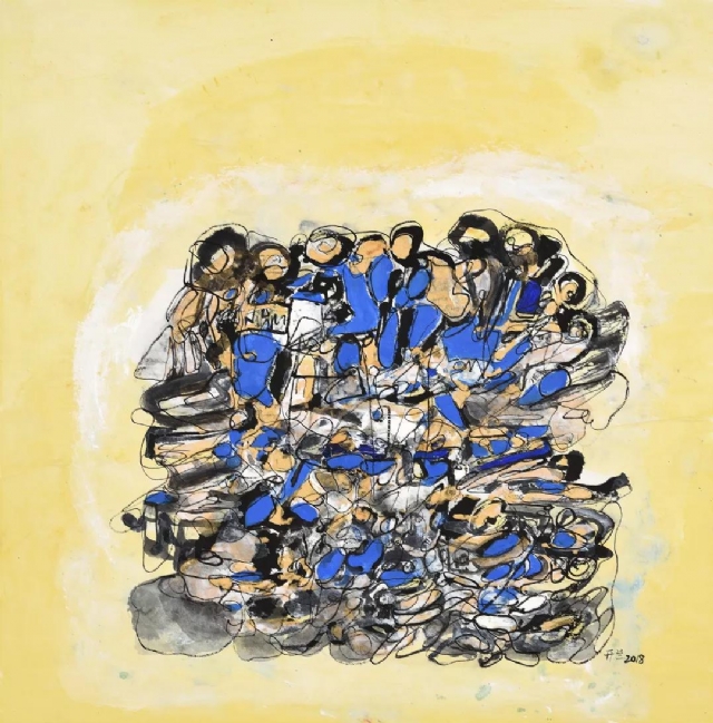 藉由這些理論、知識(shí)、見解支撐的畫家馮開蘭,就超脫了對(duì)三維現(xiàn)實(shí)世界的描摹與糾結(jié),她遁入無(wú)形無(wú)相之地,一任想象與探索在畫面上馳騁,無(wú)有掛礙。