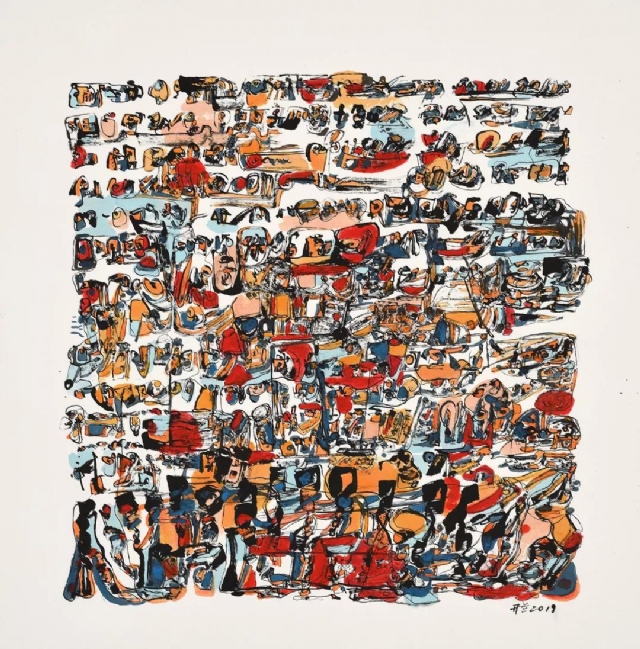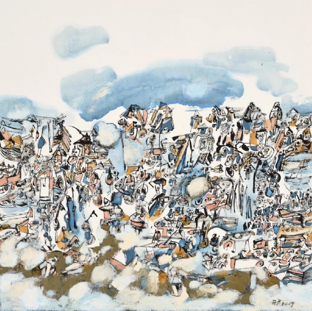 這些作品,它們仿佛是畫家扔給世人的梯子,籍此,在去往畫家神秘?zé)o垠的內(nèi)心世界時(shí),就有跡可循.雖然線條雜亂,塊面綜錯(cuò),但山巒依稀,峰壑已顯.方寸之間,已把遙遠(yuǎn)的心靈之山呈現(xiàn)到觀者眼前。