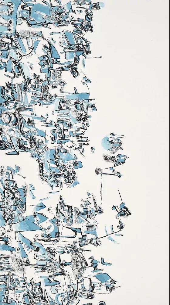 (請(qǐng)橫屏觀看)藍(lán)世界 宣紙 墨 丙烯 66x120cm