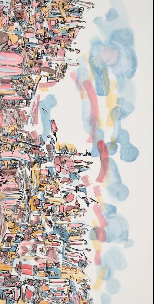(請(qǐng)橫屏觀看)飛躍彩虹 宣紙 墨 丙烯 68x136cm