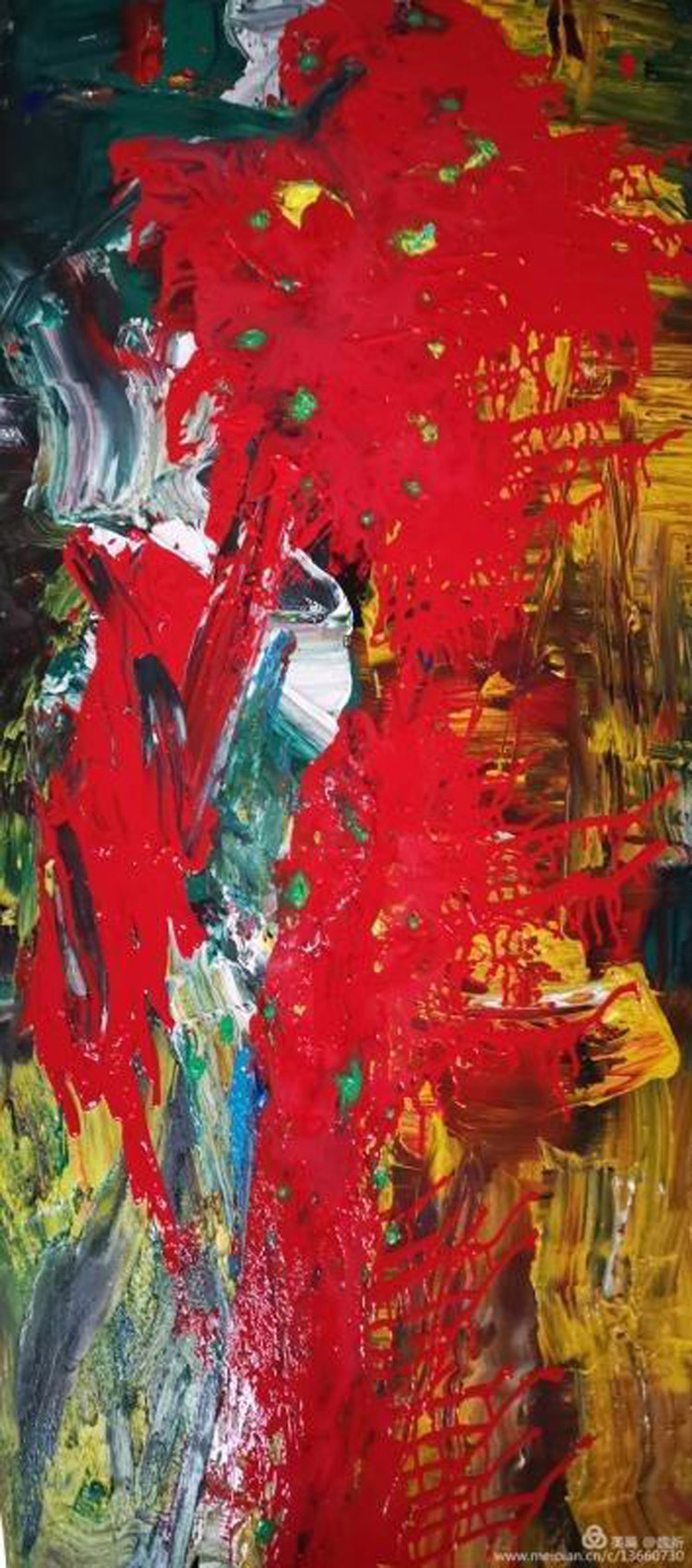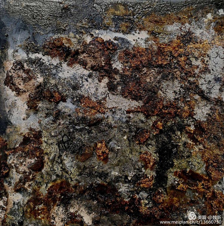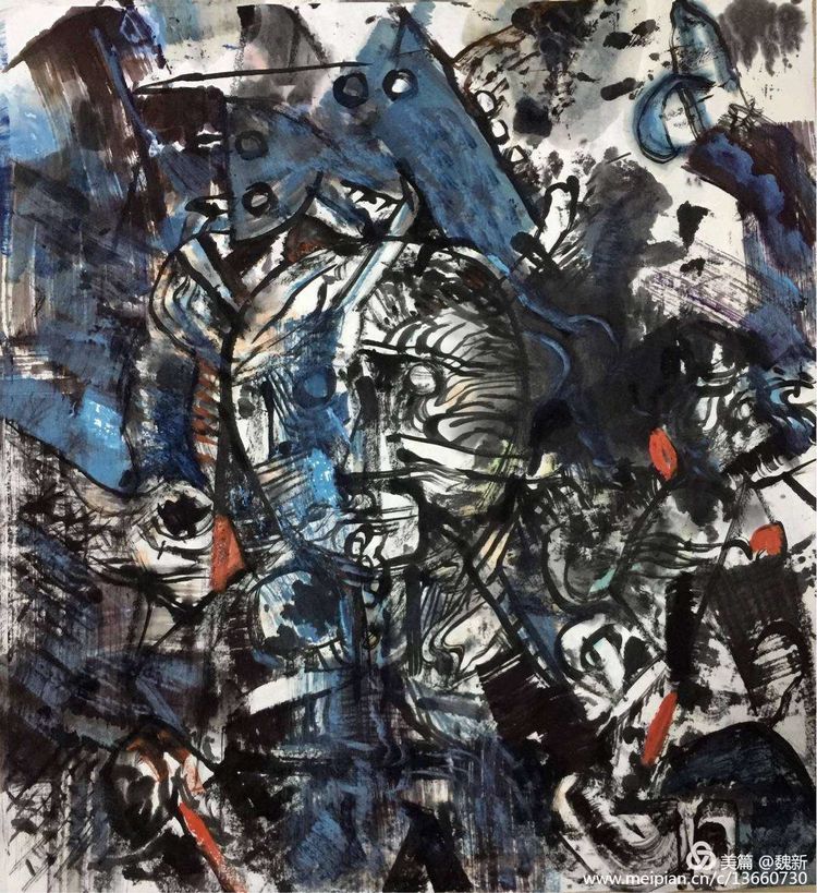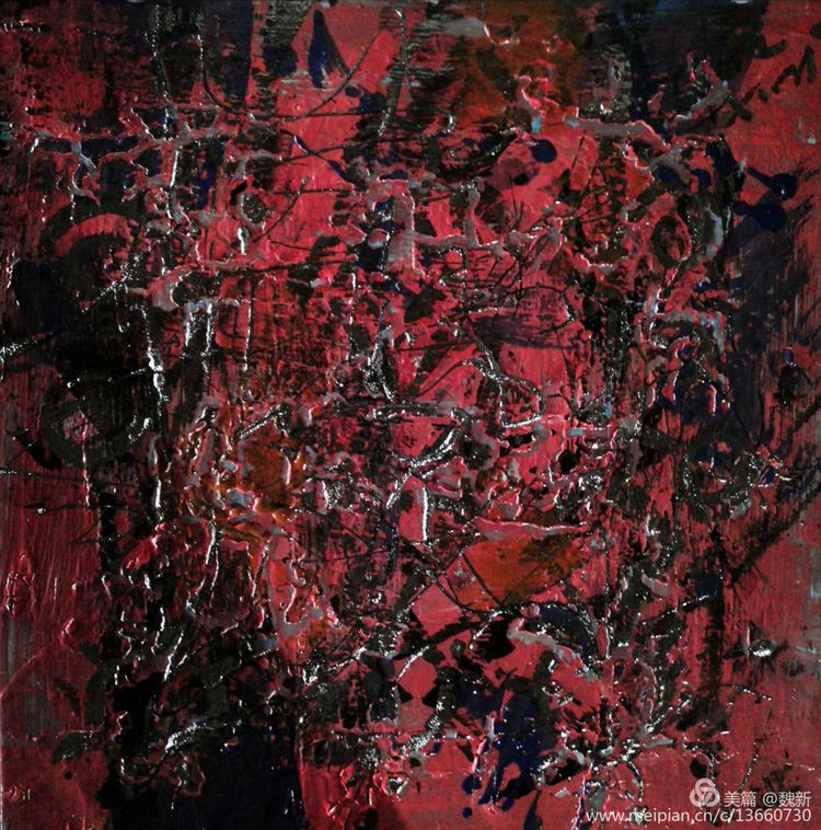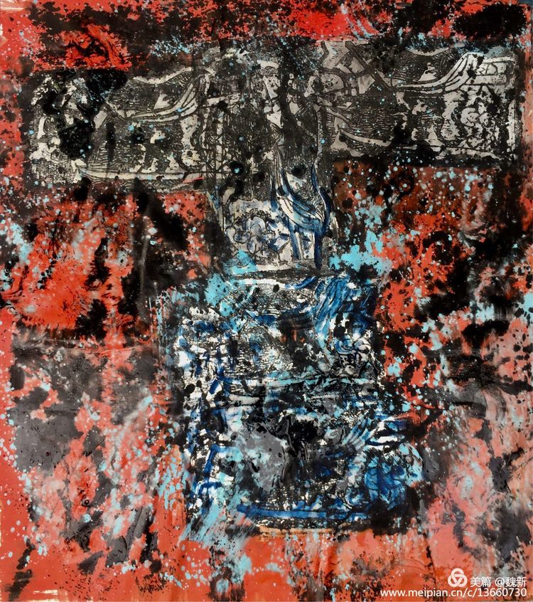 筆者在三年前,在考察亞洲藝術(shù)期間初識(shí)魏新于他在中央美院的材料工作室。作坊式的工作室立刻聯(lián)想到英國(guó)藝術(shù)家培根……從他大量的材料試驗(yàn)繪畫(huà)中令我感受到了他在尋找某種失落已久的遠(yuǎn)古之夢(mèng)。最近的十年里,魏新不像其他某些畫(huà)家那樣墨守成規(guī)。相反,他放下了固有的藝術(shù)觀(guān)念,不斷嘗試新的繪畫(huà)方法,尤其在繪畫(huà)媒介里他找到了中國(guó)最具典型的色彩語(yǔ)言--元青花釉料中開(kāi)創(chuàng)了一個(gè)顛覆性的嶄新藝術(shù)境界。因?yàn)樗囆g(shù)家的生命力就在一種不斷地“自我顛覆和自我確立”中生成。他放棄了過(guò)去那種畫(huà)風(fēng),取而代之的是對(duì)畫(huà)面的明確表達(dá),一種對(duì)直觀(guān)感覺(jué)的毫不含糊的表現(xiàn)。這不是一種純粹的形式或是某種模式的幾個(gè)組成部分,而是一種源于畫(huà)家精神世界的有機(jī)外顯體。