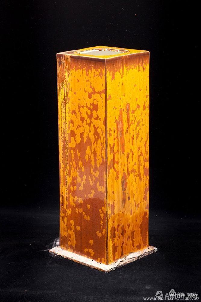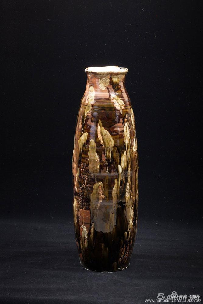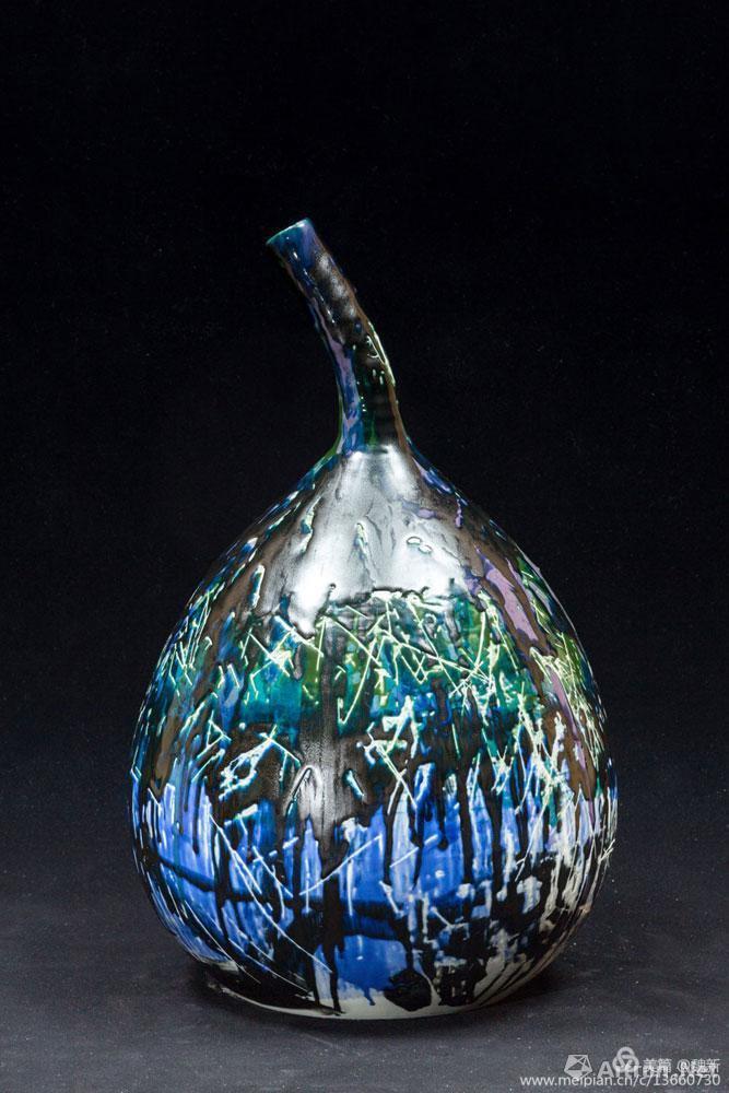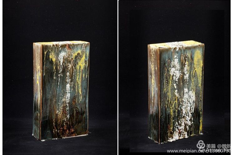 未見(jiàn)魏新本人,卻很不陌生,看魏新似乎是一個(gè)不守安分的畫(huà)家,有野性、有沖動(dòng)、有需求,常常一頭鉆進(jìn)窯場(chǎng),用釉彩與泥漿在器型上涂抹、澆潑,讓不同的釉料順著形態(tài)自由地滴淌、重疊,釋放熱情,宣泄欲望,在一千三百度以上的高溫還原中相互作用,享受意想不到的結(jié)果之樂(lè)。好像是打開(kāi)圍欄,牛羊重回天野,自由地選擇青綠,隨風(fēng)行,跟云移動(dòng)的感覺(jué),在漫無(wú)邊際的世界里充分的發(fā)揮新的可能。這正是魏新內(nèi)心渴求與期盼的結(jié)果和付出的回報(bào)。他喜歡材料,好大漆,研究坦培拉的肌理,東邊滋養(yǎng),西邊情趣,迷戀陶土,在漫無(wú)邊際的世界里充分的發(fā)揮新的可能。畫(huà)家玩陶似乎是近些年的時(shí)髦,一鍋蜂堆在作坊里,在現(xiàn)成的瓷上器上復(fù)制宣紙國(guó)畫(huà)之類(lèi)的東西,而魏新的選擇卻是對(duì)泥性,釉色與火溫的所表現(xiàn)出來(lái)的肌理變化與殘缺的美感研究。他在制陶過(guò)程中體會(huì)的是一種自然韻味和変幻的神奇。陶瓷之美乃自天成,我很想看到更多的藝術(shù)人有魏新這樣的欲望,這般的熱情與創(chuàng)造力,讓世人刮目相看我們的當(dāng)代陶瓷藝術(shù)的美好心境。