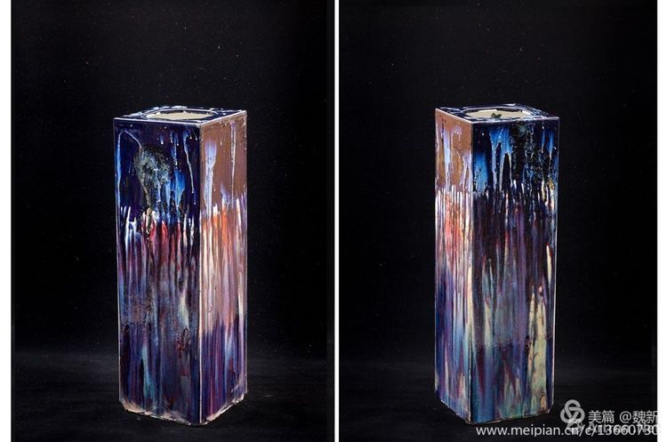 在繪畫(huà)界中,魏新可以說(shuō)是一位不斷的探索者,他自己和他所理解的繪畫(huà)也完全是一種另類(lèi)。魏新憑借自己所認(rèn)同的“藝術(shù)創(chuàng)造”的含義,可以使他不去重復(fù)以往的創(chuàng)作主題,為的是能更加集中地突出對(duì)具體事物的形式創(chuàng)造。對(duì)他而言,要他解釋與生俱來(lái)的創(chuàng)造力其難度是可想而知的,因?yàn)樗侵T種因素的結(jié)合體。因此,在他的作品中感覺(jué)是重要的,而且魏新將他所有注意力都集中在尋思這些感覺(jué)的概念上。即把高溫顏色釉在1380度高溫的作用下,發(fā)生奇妙的變化,產(chǎn)生多彩多姿、如夢(mèng)似幻的視覺(jué)效果。在火的洗禮中,作者創(chuàng)作的靈感得以凸顯,藝術(shù)營(yíng)養(yǎng)得以豐富,創(chuàng)作意念得以強(qiáng)化。對(duì)于高溫顏色釉的表現(xiàn)力,要求作者要經(jīng)過(guò)反復(fù)實(shí)驗(yàn),才能做到較好。顏色釉源于商代的彩陶,景德鎮(zhèn)的陶瓷業(yè)始于漢代,昌興于元代,由于當(dāng)時(shí)的蒙古統(tǒng)治者崇上碧藍(lán)色的蒼天,使得青花瓷得到朝廷親昵,并作為國(guó)賓禮物開(kāi)始在歐洲貴族社會(huì)中流行。隨之帶動(dòng)了意大利文藝復(fù)興之萌芽,東方帝國(guó)的瓷器- CHINA在西方世界得意正名 。當(dāng)今二十一