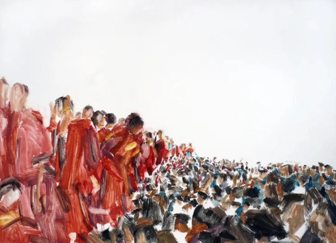 以濃厚的人文色彩和對簡單的日常生活的洞察力描繪出的姿態(tài)豐富、充滿活力的人物作品,可與其他采用宏大的構(gòu)圖視角的作品相媲美,而在后者中人物被簡化為僅用于形成遠(yuǎn)景和形狀的戲劇效果元素,幾乎是抽象的。正是介于這兩種觀點之間,陽輝給有幸欣賞其作品的鑒賞家創(chuàng)造一種視覺享受。