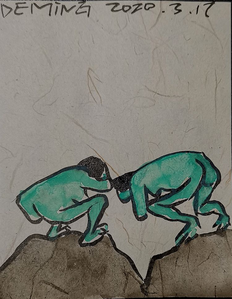 本來就是個(gè)宅男,只要廚柜里還有糧食,三五個(gè)月不出門也是常有的??蛇@個(gè)春天非同尋常,我們的內(nèi)心極度不安、恐懼和憂傷。來自朋友圈的信息狂轟爛炸,是非顛倒,群魔互咬,社會(huì)撕裂。因?yàn)橐粋€(gè)病毒引爆了這個(gè)歲月靜好的盛世虛華,世界為此風(fēng)聲鶴唳,互甩大鍋。其實(shí)病毒都是我畫的,鍋就我來背,它的源頭就是我們內(nèi)心的惡,惡之花,花之冠,冠之狀,是為冠狀君。