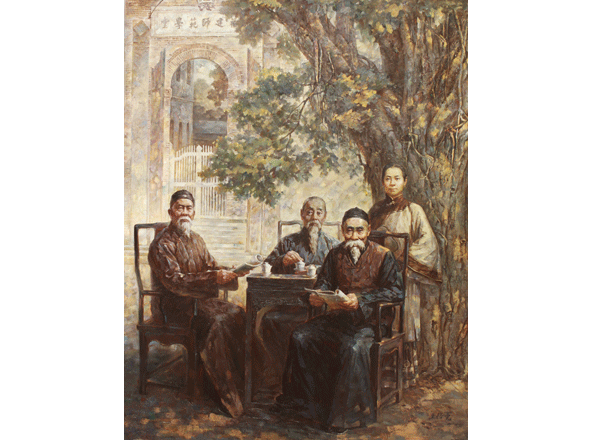 為什么會(huì)選擇創(chuàng)作《陳寶琛》這一歷史題材呢?主要有以下兩個(gè)方面:首先,與本人的經(jīng)歷有關(guān)。本人本、碩、博都在福建師范大學(xué)美術(shù)學(xué)院完成學(xué)業(yè)的,畢業(yè)后又留校任教,對(duì)這所學(xué)校充滿感情,而這所百年老校的創(chuàng)辦者正是陳寶琛。1907年全閩師范學(xué)堂升格為福建優(yōu)級(jí)師范學(xué)堂(即福建師范大學(xué)前身),陳寶琛首任學(xué)堂監(jiān)督,這是福建第一所培養(yǎng)中、小學(xué)師資的師范學(xué)校,從而開啟福建高等師范教育的先河。它與京師優(yōu)級(jí)師范學(xué)堂、兩江優(yōu)級(jí)師范學(xué)堂等成為我國真正意義上具有大學(xué)教育模式的高等學(xué)府。其次,陳寶琛是中國近現(xiàn)代著名的教育家。自光緒十一年(1885年)起,陳寶琛在家鄉(xiāng)數(shù)十年積極參于辦學(xué)活動(dòng),為福建的新式教育作出杰出的貢獻(xiàn)。陳寶琛主張崇實(shí)學(xué)以勵(lì)人才,提倡東西方文化交流、強(qiáng)調(diào)化民成俗其必由學(xué),溫故知新可以為師等辦學(xué)理念對(duì)后人產(chǎn)生深遠(yuǎn)的影響。