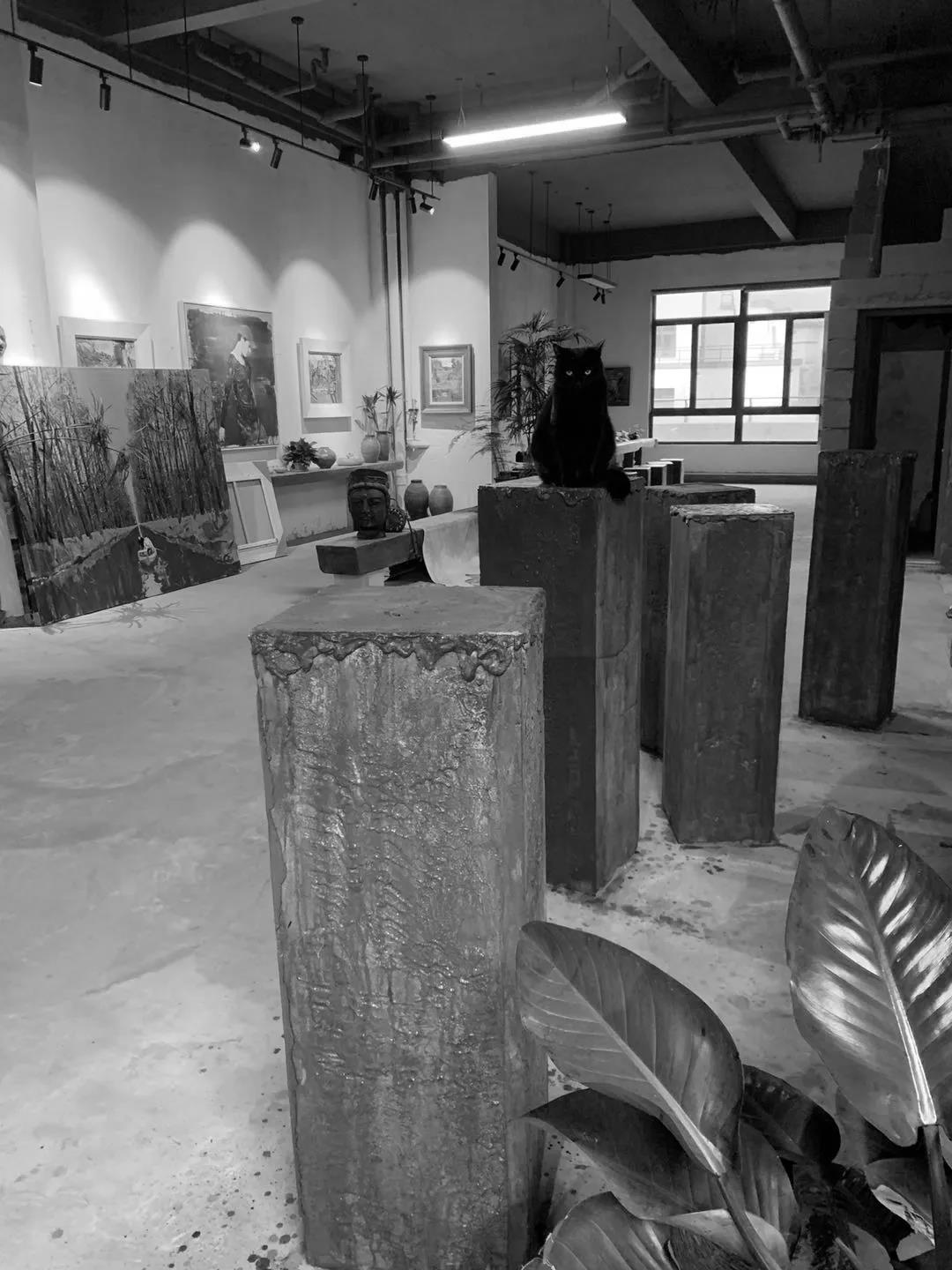 他的工作室坐落在一個叫做翡翠灣的新樓盤里,園區(qū)的道路和綠化基本完工,整潔干凈;由于是半山別墅,周圍煞是安靜;而他一手整改的畫室,自然別有一番味道。
