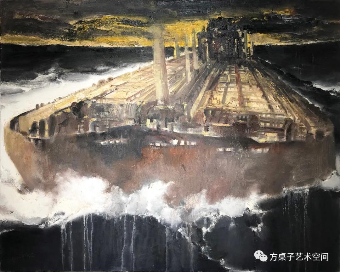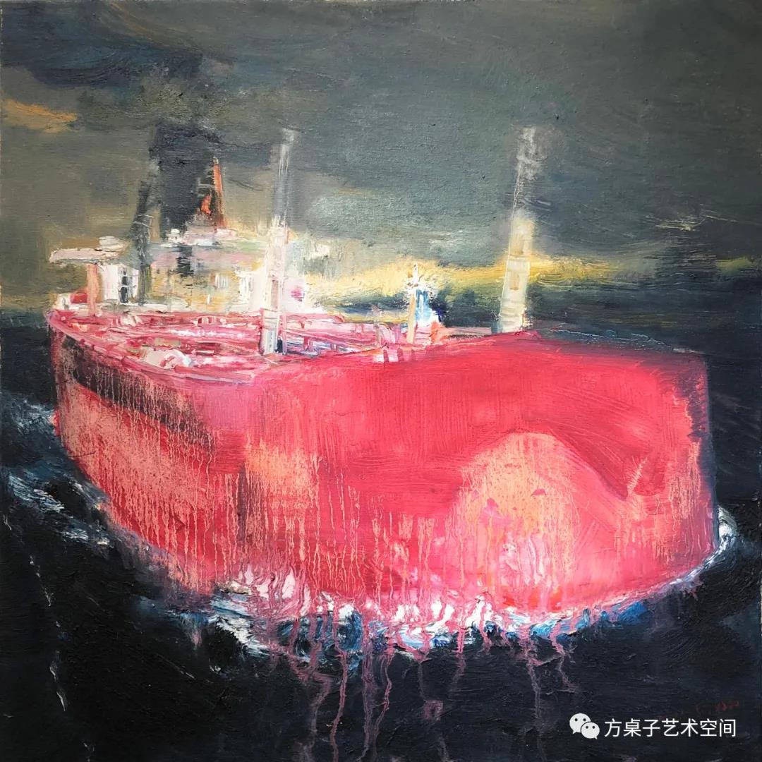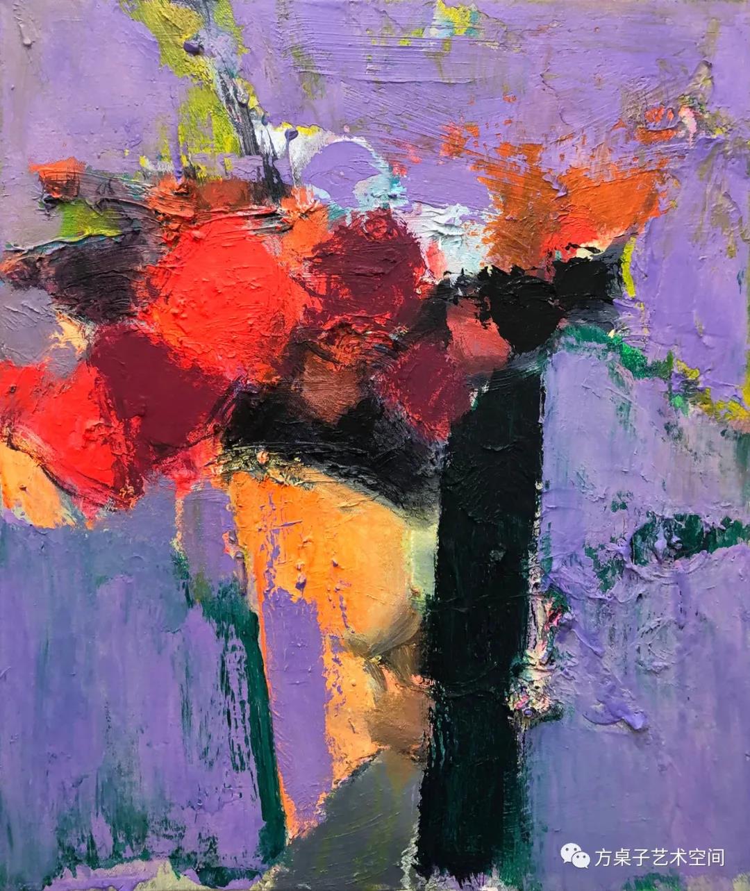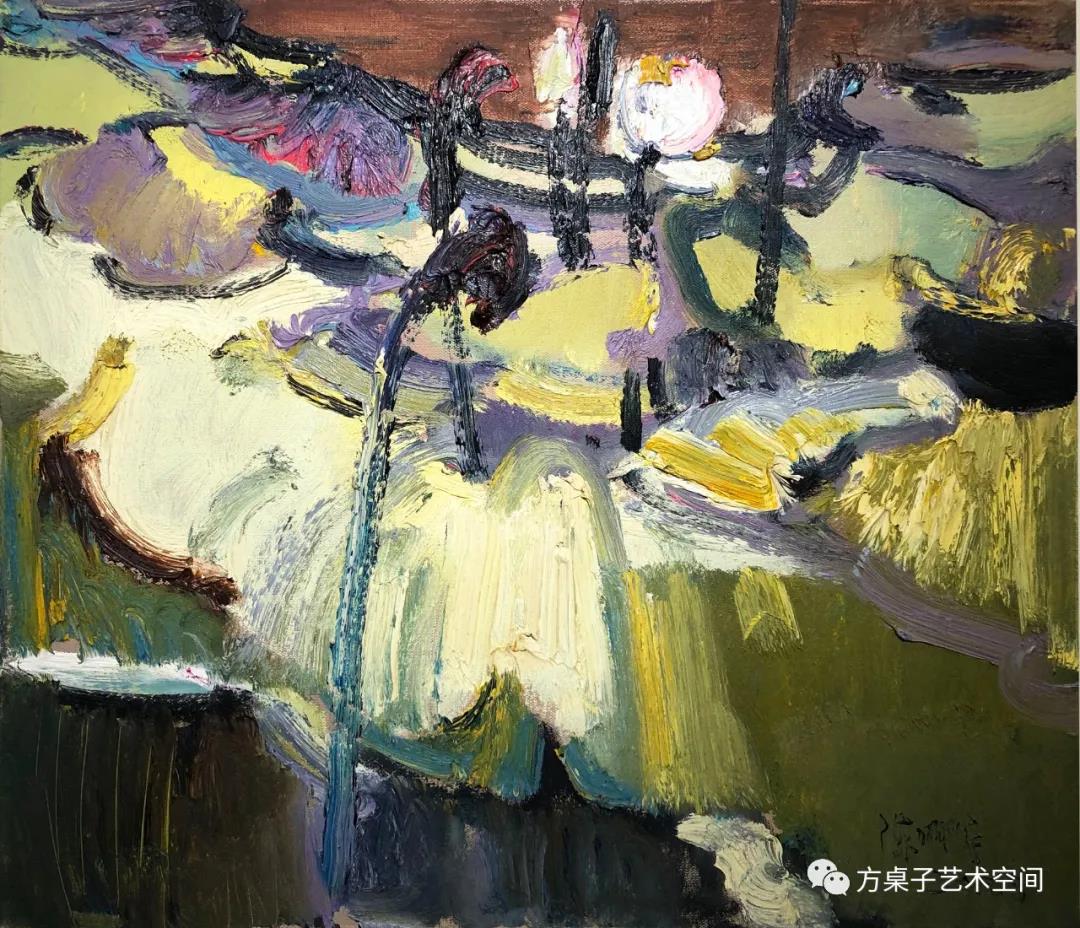 看明華的畫,首先映入視野的,是經由自然物像借勢而來的抽象的框架結構。將繁雜繽紛的自然景象進行整合提煉和強化。濃郁、厚重、強烈的色彩和畫面效果。顯示出他對畫面的把控能力和繪畫上的主動性。而他的作品不論大畫小畫都有一種大氣磅礴的氣勢,和格調不俗的品質。這種氣勢首先來自他筆意的書寫性與意象境界的表達;格調則來自對繪畫本身問題的探索,而非拘泥于對自然的描摹再現(xiàn)。他的《船》系列間于具象與意象的表現(xiàn),很震撼,看后有一種揮之不去的神秘甚至恐懼的感覺!而植物系列則燦爛茁壯,生機盎然,又是一番天地。