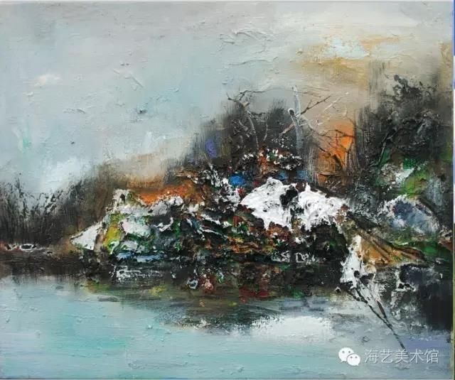 欣賞王裕亮《意之境》系列油畫(huà),如同在讀一首首崇高的抒情詩(shī),它們抵達(dá)心靈的最隱秘處,引起我深深的共鳴。他的《意之境——閉冬》充分展示了中國(guó)傳統(tǒng)繪畫(huà)的意境,整個(gè)畫(huà)面色彩斑斕,有枯瘦的樹(shù)枝在寒冬里砸得驚心動(dòng)魄,近處的河流卻那么赤裸裸地橫成一句沒(méi)有平仄的詩(shī),岸邊的雪靜靜地覆蓋著草木,消費(fèi)最后這一冬天。各種色調(diào)揉在一起,把畫(huà)家精心預(yù)謀的意境,纏纏綿綿地擦出一曲動(dòng)人心弦的生命之歌謠。
