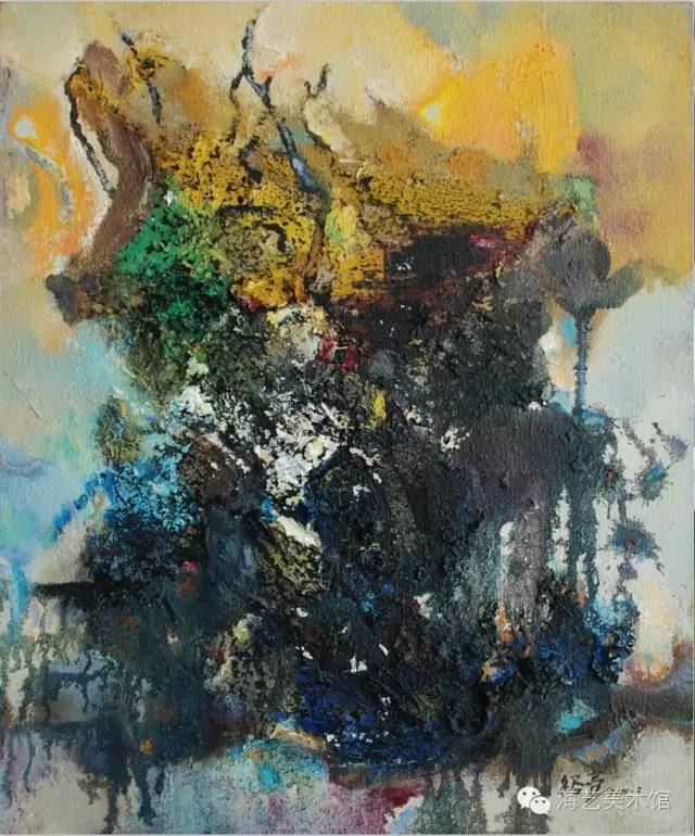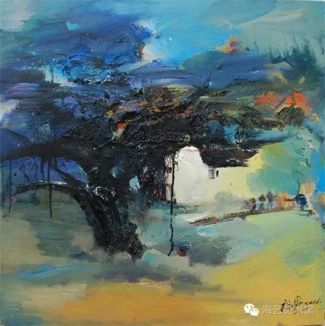 欣賞他的作品你似乎很難一眼望盡,而必有一個(gè)從遠(yuǎn)觀到進(jìn)讀,從側(cè)面到細(xì)微,每個(gè)角度都有各不同的境界意味。王裕亮偏愛(ài)黃、藍(lán)、黑為基調(diào),各以其或深邃、或幽遠(yuǎn)、或澄澈、或柔靜、或鮮亮的境界誘你進(jìn)入一個(gè)曠遠(yuǎn)的天地。
