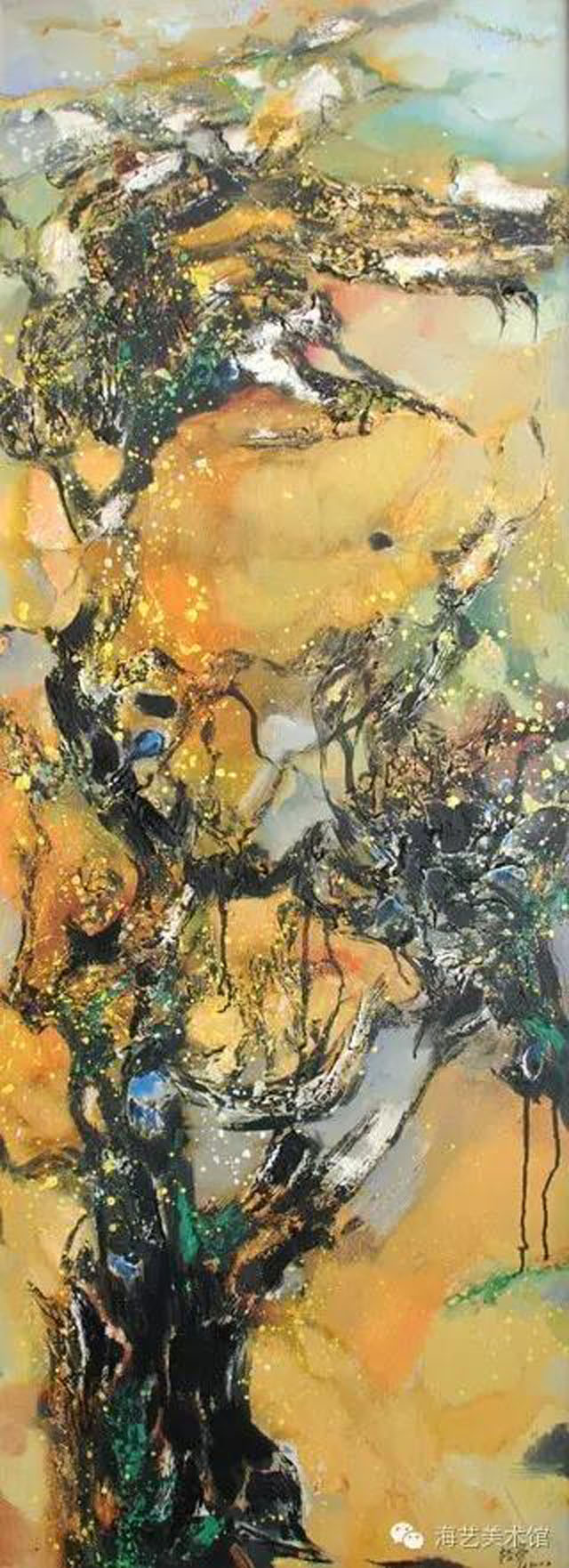 那些流走噴薄于畫(huà)面的筆調(diào),像天空的流云,或聚、或散、或舒緩、或糾結(jié)、或飄逸、或凝重、或濃郁、或清亮、或牽連糾纏,或自由來(lái)去,盡是王裕亮心靈之流光。