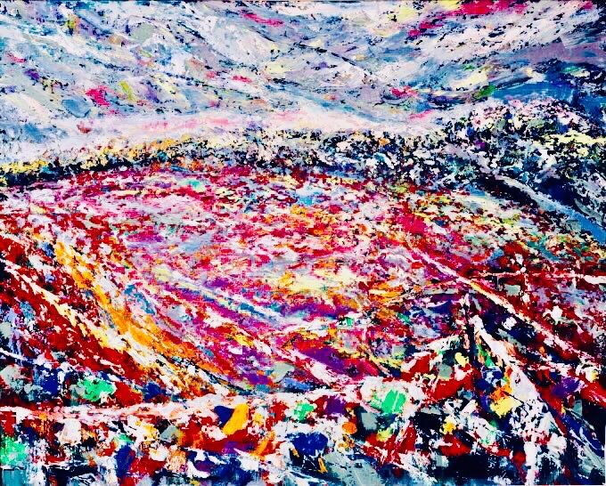 西部高原,個(gè)體的生靈群。無(wú)意識(shí)影響我人格行為動(dòng)機(jī)、能量、想象、聯(lián)和原始的意象,得以創(chuàng)作的池塘。西部高原,地氣與震蕩的時(shí)空,水土交融,氣脈溫和,溶于感覺(jué)之中,入骨子,心理構(gòu)建阿克廈的引力場(chǎng)五行的現(xiàn)象基礎(chǔ),及空間的“原始介質(zhì)”麥通直通。即阿克西的記錄儀中,念力與纏繞的量子光,而獲無(wú)命之命的我,正至于懷,通于靈魂語(yǔ)言。入眼簾觀之中,溢之蕩漾的心靈,獲于厚發(fā)性的心智,支配情感的表達(dá)。視覺(jué)之上直覺(jué)的跡象是:意!高原,圣山圣水畫盡情懷之中。下一個(gè)埡口是出處。