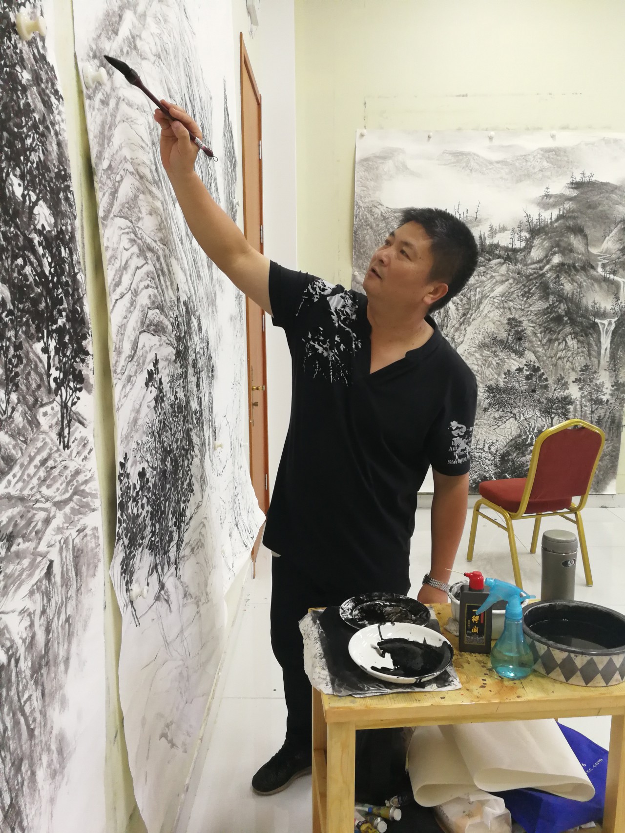 作為中美協(xié)會員的他,在國畫創(chuàng)作上有著獨(dú)自的見解與理念:“一定要有量的積累,才有質(zhì)的飛躍”;傳承——突破——創(chuàng)新。同時為了提升自身書畫素養(yǎng),為之他經(jīng)常與省內(nèi)外書畫專業(yè)人員進(jìn)行學(xué)術(shù)上的交流與藝術(shù)上的切磋。2004~2005年因仰慕著名國畫大師張立辰的繪畫技法,他直赴中央美術(shù)學(xué)院國畫系進(jìn)修去了,用他的話說“我是奔著他去的,從他那里比較系統(tǒng)地接受美院的理論及模式,使自己的路開始走的比較 正了。”對其國畫的后來風(fēng)格,著名畫家、策展人、美術(shù)評論家吳秋雨先生說“得益于當(dāng)代寫意大師張立辰先生傳教,深得寫意精神之道。寫意花鳥乃畫科最難,須有豐厚文學(xué)修養(yǎng)、個人天生才情,方能成事。華林兄深得畫理,知難而進(jìn),筆墨酣暢、收放自如,筆到意到不求相似,道技相輔,得心應(yīng)手,故能成就寫意人生?!?安徽省著名畫家張有鑄先生也對華林的國畫大加贊賞:“筆墨瀟灑放達(dá),卻又能精心營造,筆痕墨痕心痕交融如一,能把畫面的意境滲透到自己的心靈之中?!?華林的國畫技法雖受到國內(nèi)同行一致好評,但他并沒有因此固步自封,滿足于自己已有的成就,而是更加虛心, 更加勤奮。2018年的去年,他又到中國人民大學(xué)藝術(shù)學(xué)院進(jìn)修學(xué)習(xí)。而今的吳華林在國畫創(chuàng)作上可謂是碩果累累,單2018年,作品就有6次在中國美協(xié)主辦的展覽中獲獎和入選,從而達(dá)到申報(bào)中國美術(shù)家協(xié)會會員資格條件。作為縣美協(xié)主席的他,除了做好自身公職工作外,還經(jīng)常組織和引領(lǐng)美協(xié)會會員寫生、創(chuàng)作、書畫交流,或舉辦書畫展等。進(jìn)企業(yè)、軍營、進(jìn)校園,以之提升會員實(shí)踐創(chuàng)作的靈感,同時也能推動云霄書畫活動的開展,從而擴(kuò)大了美協(xié)的影響力。長期以來縣美協(xié)都能及時協(xié)助有關(guān)部門、組織協(xié)調(diào)云霄縣各種文化節(jié)活動。有“兩岸三地”書畫交流活動,到河南固始參加“根親文化節(jié)”;進(jìn)行尋根文化交流等,近一兩年來還組織我縣美術(shù)團(tuán)隊(duì)分別和黃賓虹齊白石兩位大師故里安徽歙縣和湖南湘潭作者舉辦聯(lián)展并進(jìn)行藝術(shù)交流。