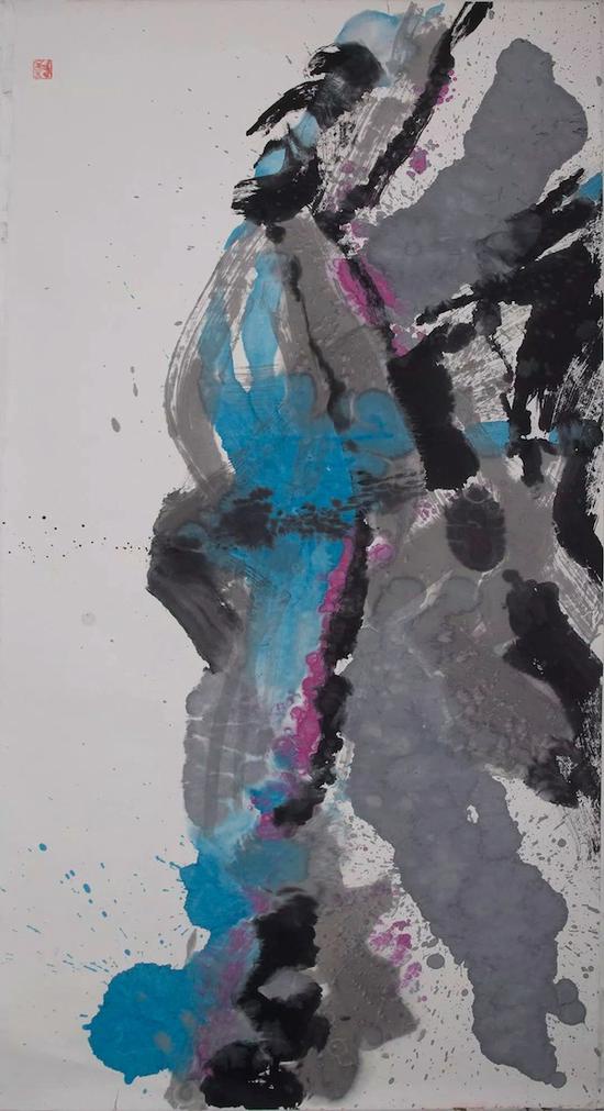 黃凱 清幽1 168x32cm 紙本彩墨 2019年