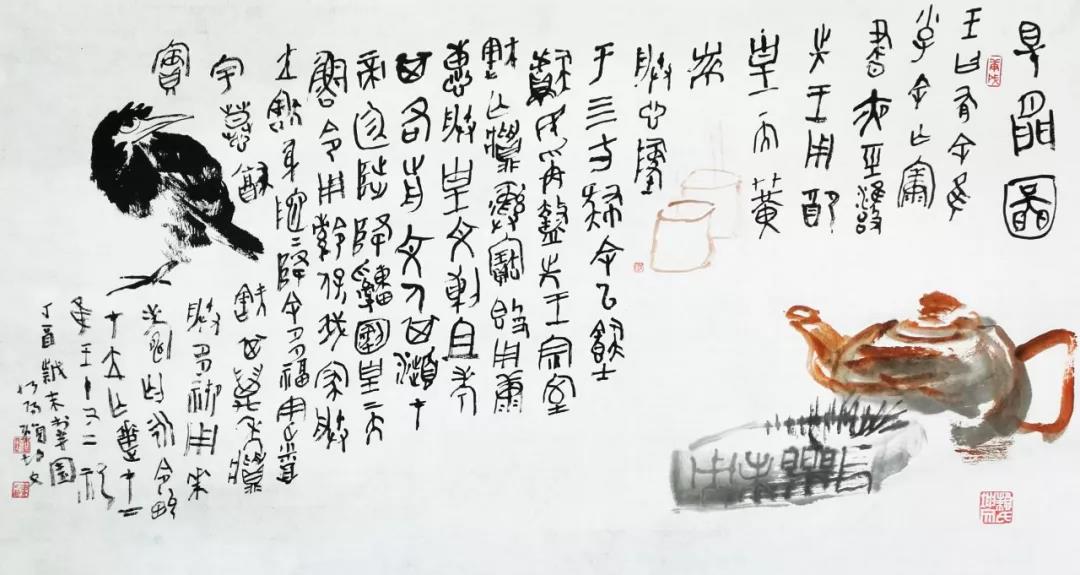 沒有機(jī)械地照搬舊文人畫的傳統(tǒng)套路和筆墨程式,而是獨(dú)出心裁,講究筆法,以寫取勝,從中可以看見他真正本色的流露、性情的鋪展和修養(yǎng)的呈現(xiàn)?!邦}材無新舊,格調(diào)有高低”。