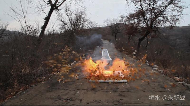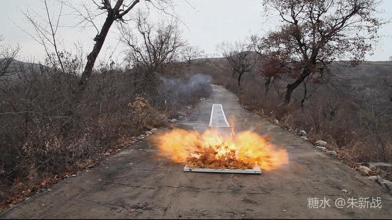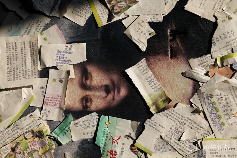 世界上最負(fù)知名度的蒙娜麗莎的微笑就此登場,但經(jīng)過了藝術(shù)的再處理,其本來所載有的現(xiàn)代主義的審美范式在一片火光的爆炸聲中被清零。在遺留下來的采石場的沙石下,亂草從生的荒野,綠油油的麥田中玉米粒中,醫(yī)院門口的中藥渣里,廟宇前的紙錢灰和全國統(tǒng)考的語文被撕碎的課本中,一聲爆炸,麗莎的笑臉隨著火光煙霧的散去而粉墨登場。笑什么,如何笑?列為看官可以根據(jù)自己的認(rèn)知結(jié)合不同場景下的微笑自己去理解。