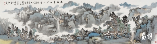 《泉落青山出白云》80cm×280cm紙本設(shè)色2018