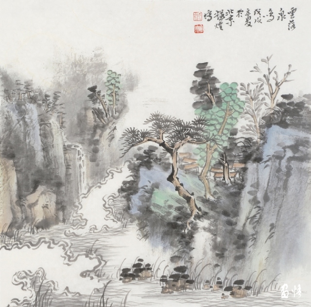 《云落泉鳴》34cm×34cm紙本水墨設(shè)色2018