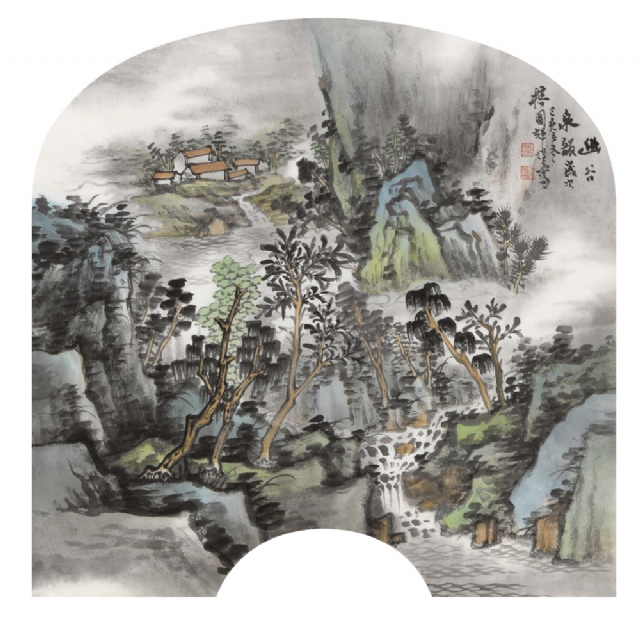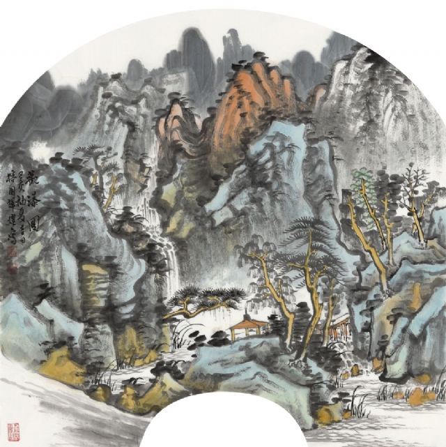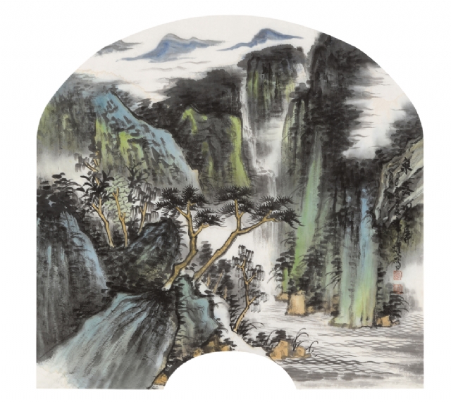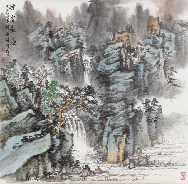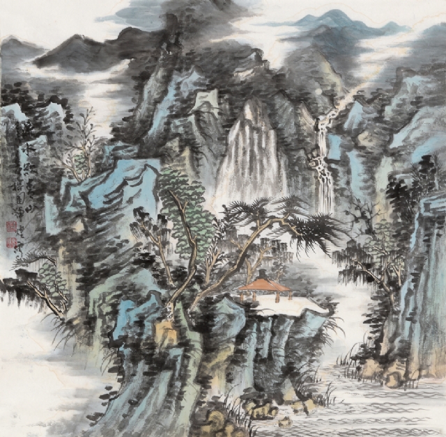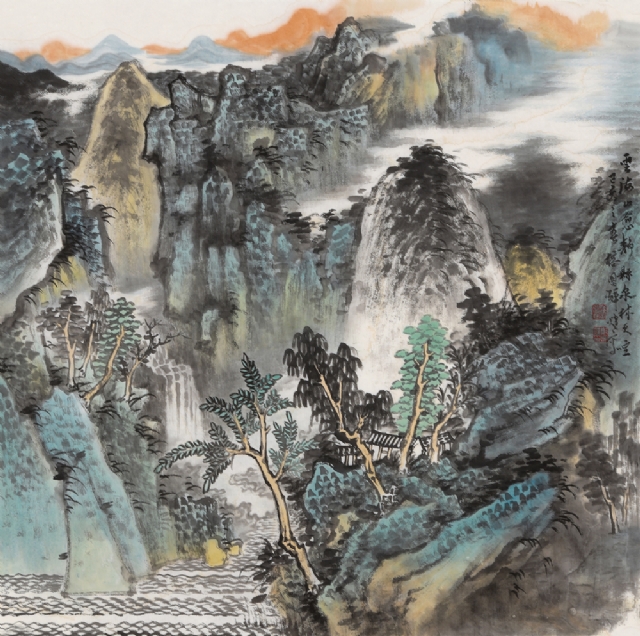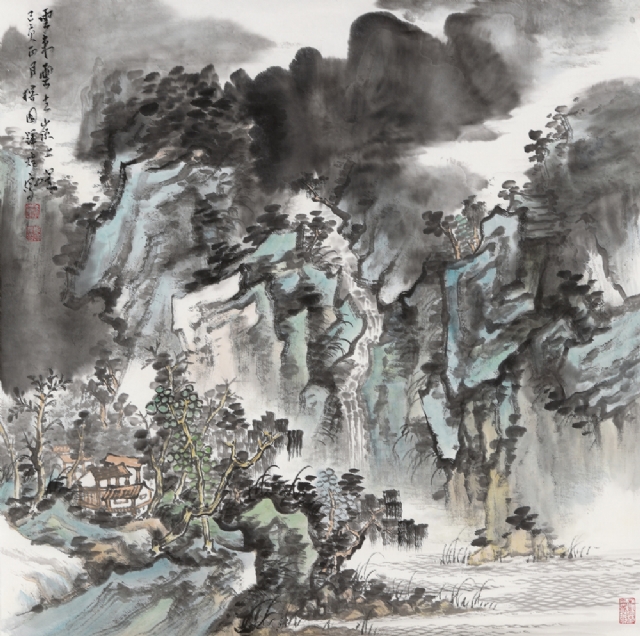 《云壑鳴泉》68cm×68cm紙本水墨設(shè)色2019