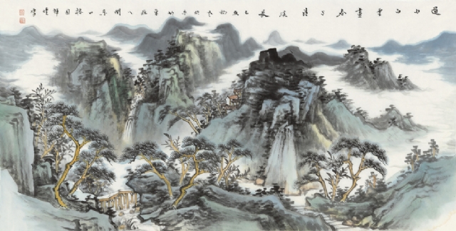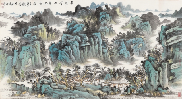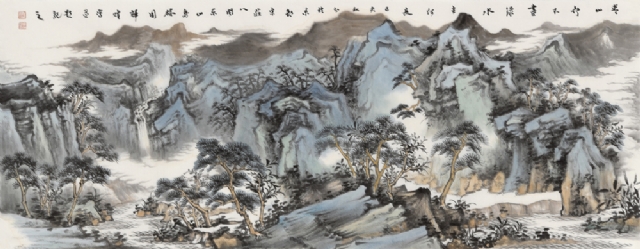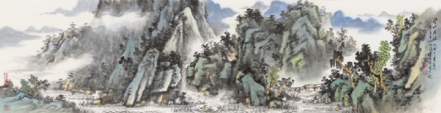 《青山綠水》34cm×136cm紙本設(shè)色2019