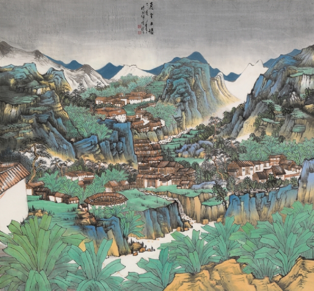 《夏至土樓》紙本 水墨設(shè)色180cmX194cm2019