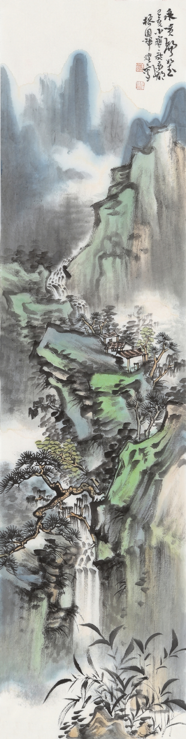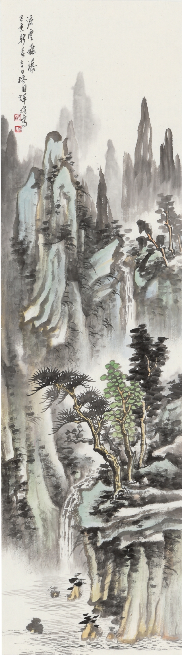 《云嶺飛泉》136cm×68cm紙本水墨設(shè)色2019