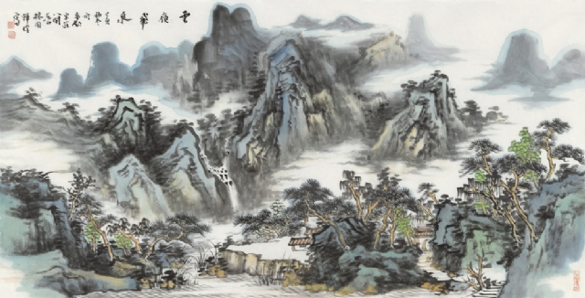 《煙云入青山》34cm×136cm紙本設(shè)色2019