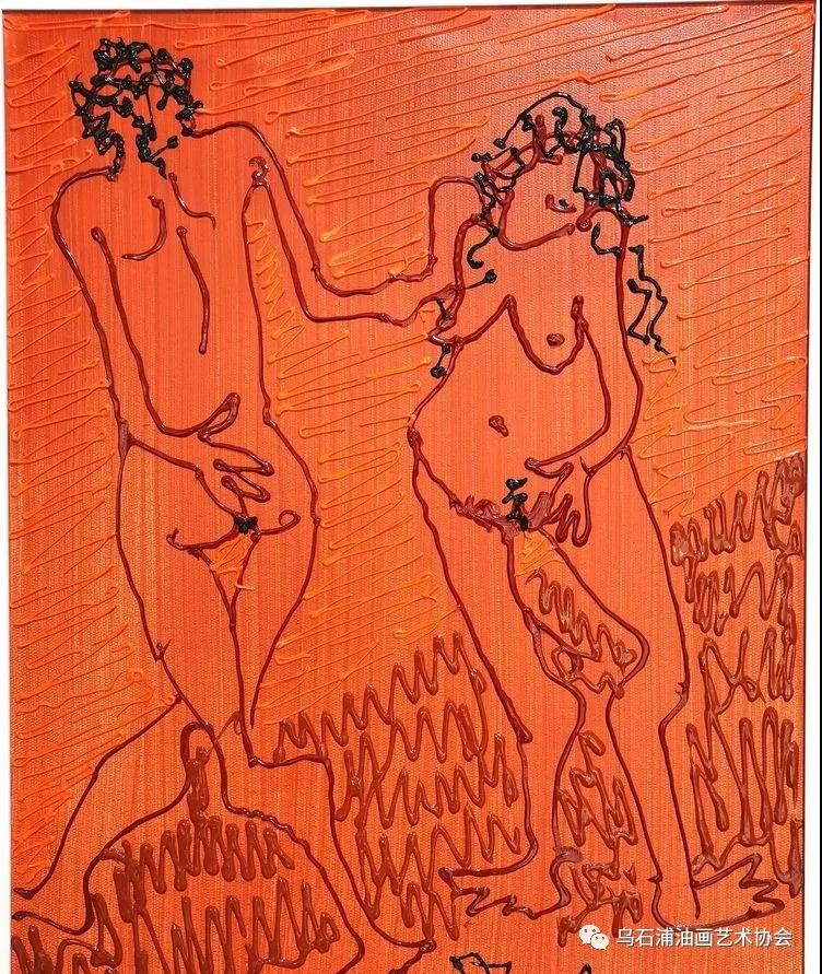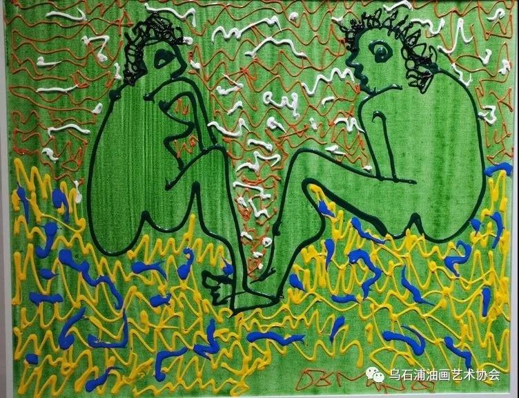 作品是藝術(shù)家自己的精神寫照,是形與靈的完美結(jié)晶。余德民在本次畫展的前言中寫到:“人生本來就是一根根從起點(diǎn)到終點(diǎn)跌宕起伏的線條。只是每個人跟每支股一樣都有獨(dú)自的運(yùn)行軌跡而已,無論自畫像還是伊甸園總也繞不開那條紅綠相間糾結(jié)纏綿時而亢奮時而沮喪的線。它是我所有作品的靈魂,也是我未來藝術(shù)開拓的基石。”是??!藝術(shù)家不竭的靈感和表現(xiàn)欲。藝術(shù)家的作品就像一面鏡子清晰的照出我們生活本來的樣子。我也很欣慰藝術(shù)家能在畫里表達(dá)出那種忠于自己的真實(shí)。