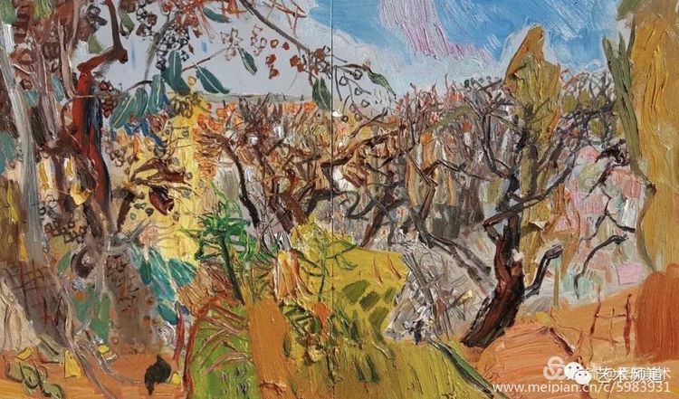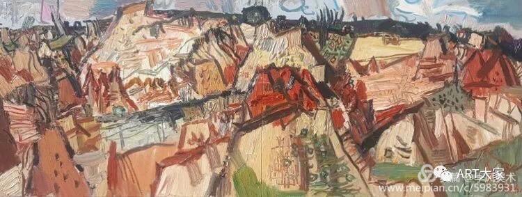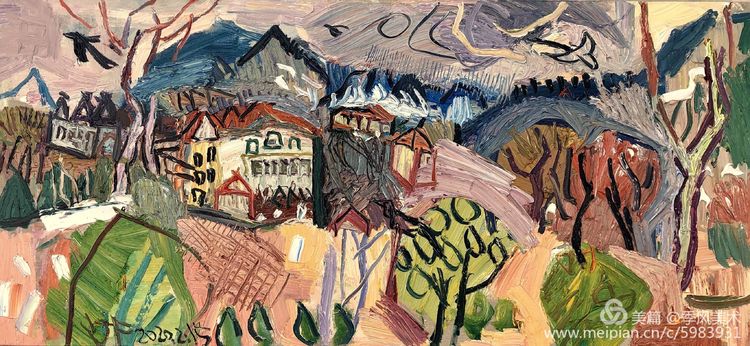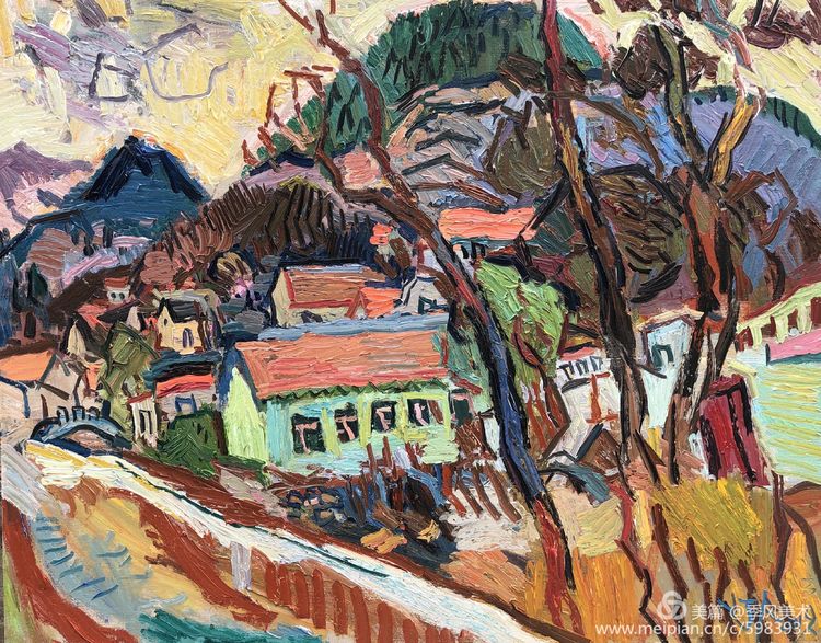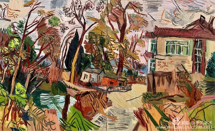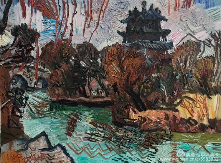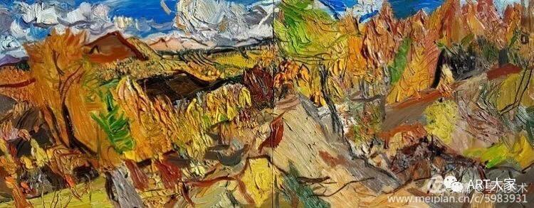 楊繼鋒酷愛藝術(shù),他幾乎把繪畫當(dāng)作自己的全部生活。正是由于有著象梵·高那樣"渴望生命"的懷想,他才一次又一次走向大地,走進(jìn)自然的懷抱,在那里奮筆抒發(fā),留下一幅幅貫注了充沛感性、飽蘸濃墨重彩的作品。在王克舉先生主持的以"寫意精神"為主旨的油畫研究群體中,他堪稱一員猛將,不善言辭能吃苦,不畏艱辛敢拼博。依我簡論,在三個(gè)方面尤其凸顯出他的意志與毅力:一是他能長期在寫生上沉下心來,在東往西去、走南駐北的寫生之旅中,都有他在團(tuán)隊(duì)中的堅(jiān)守。無論在怎樣的地理、場景、氣候中寫生,他總是不計(jì)條件,埋頭作畫,專注投入,所畫作品難以計(jì)數(shù),以"量"的積累達(dá)到"質(zhì)"的提高。二是在克舉先生的指導(dǎo)下,他掌握了油畫寫生的要領(lǐng),注重把握重點(diǎn),概括自然物象的形貌,形成富有節(jié)奏的畫面布局。他尤其抓住色彩表現(xiàn)力這個(gè)語言,在感受自然色彩的基礎(chǔ)上提高色彩的純度、明度和強(qiáng)度,將自然風(fēng)景的色彩關(guān)系轉(zhuǎn)換為畫面色彩的結(jié)構(gòu),以此為主導(dǎo)統(tǒng)攝畫面,形成以色彩的敘事。在色彩的感性方面,他顯露出優(yōu)秀的秉賦。三是在"寫意"這個(gè)課題上不斷加深認(rèn)識,將油畫寫生的直接性與臨場表達(dá)的表現(xiàn)性結(jié)合起來,在畫面構(gòu)成上突出平面感,形成富有張力的畫面空間,在運(yùn)筆上更是縱橫恣意,用極為隨性放松的點(diǎn)、線、面組合交織,使筆意、肌理與色調(diào)、造型渾然一體,展現(xiàn)出"寫"的生動性和"意"的豐富性。觀賞他的作品,一種"天人合一"的精神屬性了然在目,一種"直抒性情"的快意也呯然感人。