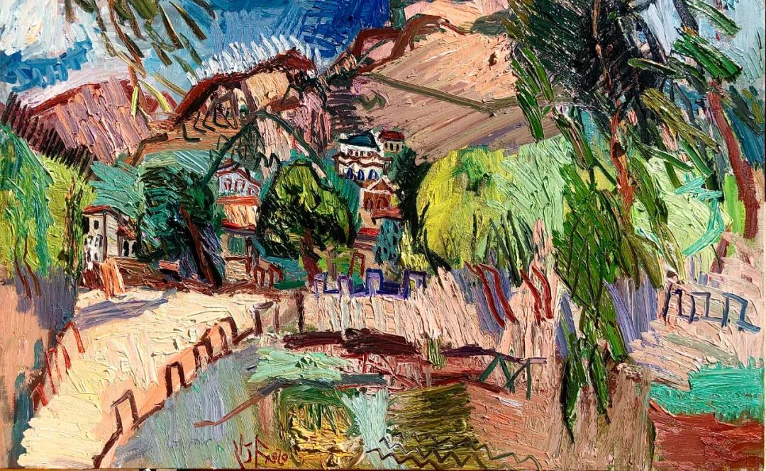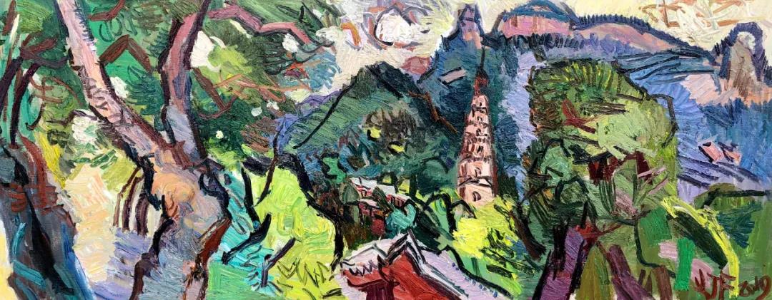楊繼鋒酷愛藝術(shù),他幾乎把繪畫當(dāng)作自己的全部生活。正是由于有著象梵·高那樣"渴望生命"的懷想,他才一次又一次走向大地,走進(jìn)自然的懷抱,在那里奮筆抒發(fā),留下一幅幅貫注了充沛感性、飽蘸濃墨重彩的作品。在王克舉先生主持的以"寫意精神"為主旨的油畫研究群體中,他堪稱一員猛將,不善言辭能吃苦,不畏艱辛敢拼博。依我簡論,在三個(gè)方面尤其凸顯出他的意志與毅力:一是他能長期在寫生上沉下心來,在東往西去、走南駐北的寫生之旅中,都有他在團(tuán)隊(duì)中的堅(jiān)守。無論在怎樣的地理、場景、氣候中寫生,他總是不計(jì)條件,埋頭作畫,專注投入,所畫作品難以計(jì)數(shù),以"量"的積累達(dá)到"質(zhì)"的提高。二是在克舉先生的指導(dǎo)下,他掌握了油畫寫生的要領(lǐng),注重把握重點(diǎn),概括自然物象的形貌,形成富有節(jié)奏的畫面布局。他尤其抓住色彩表現(xiàn)力這個(gè)語言,在感受自然色彩的基礎(chǔ)上提高色彩的純度、明度和強(qiáng)度,將自然風(fēng)景的色彩關(guān)系轉(zhuǎn)換為畫面色彩的結(jié)構(gòu),以此為主導(dǎo)統(tǒng)攝畫面,形成以色彩為關(guān)鍵詞的敘事。在色彩的感性方面,他顯露出優(yōu)秀的秉賦。三是在"寫意"這個(gè)課題上不斷加深認(rèn)識,將油畫寫生的直接性與臨場表達(dá)的表現(xiàn)性結(jié)合起來,在畫面構(gòu)成上突出平面感,形成富有張力的畫面空間,在運(yùn)筆上更是縱橫恣意,用極為隨性放松的點(diǎn)、線、面組合交織,使筆意、肌理與色調(diào)、造型渾然一體,展現(xiàn)出"寫"的生動(dòng)性和"意"的豐富性。觀賞他的作品,一種"天人合一"的精神屬性了然在目,一種"直抒性情"的快意也呯然感人。