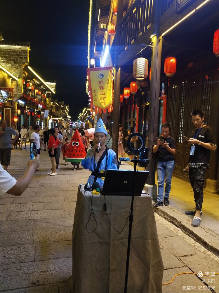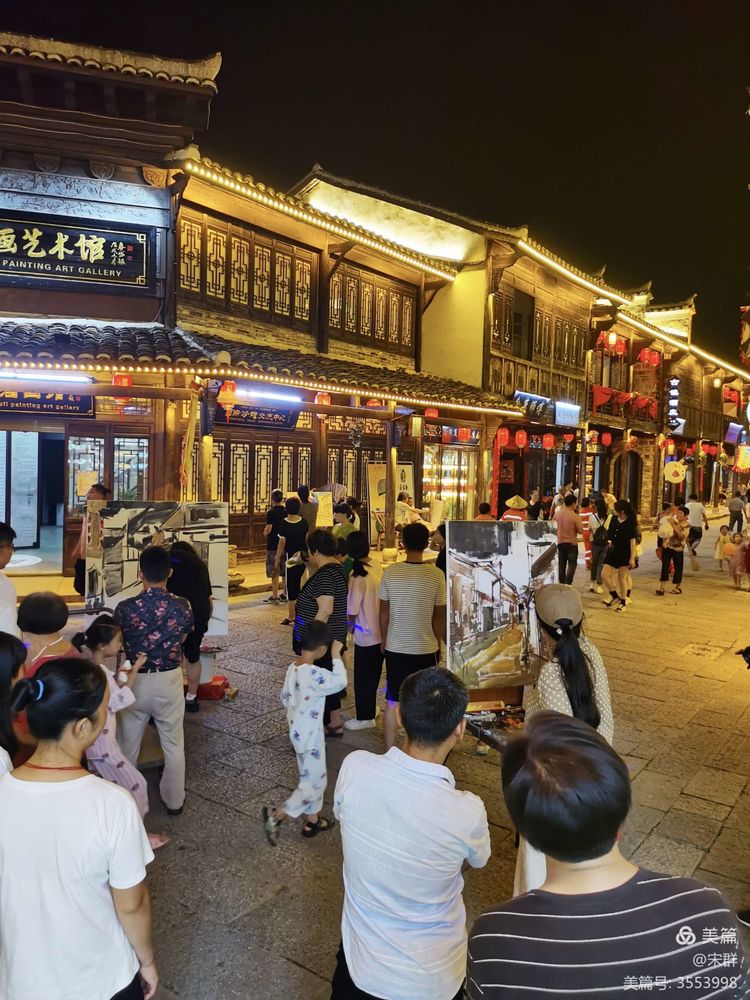 夜色中,我沿著青石板路往前走,每一家店鋪仿佛都是一個(gè)歡樂場(chǎng),每個(gè)歡樂場(chǎng)里都有著快樂、純凈、善良的靈魂,一切都是一副人間天堂的樣子。我瞬間覺得整個(gè)人都跟著快樂起來。
