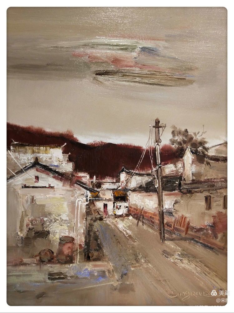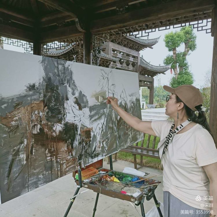 古城的夜晚很明亮,我被月光溶溶下的風(fēng)物所陶醉。我們幾位初來古城的畫家,在代山老師的建議下,第一回在夜色中寫生,第一次各自用畫筆表現(xiàn)了古城的夜景。當(dāng)色彩在畫布上流動(dòng),我已融入古城,隨著騎樓的起伏變化,點(diǎn)線面的交織,建立著我心中的古城畫面。