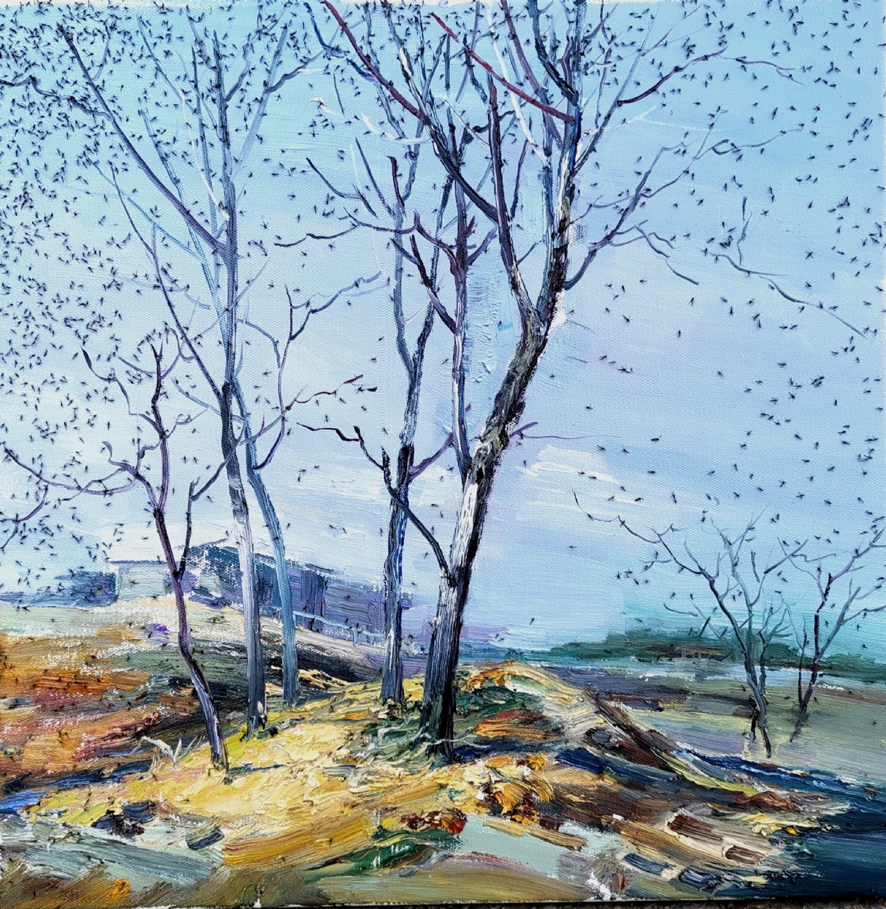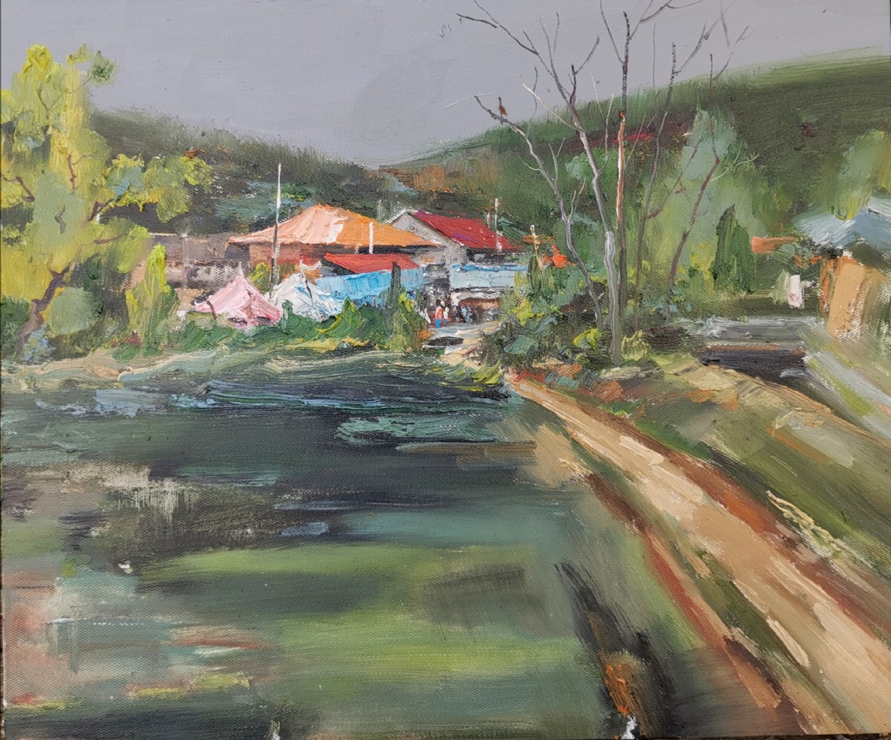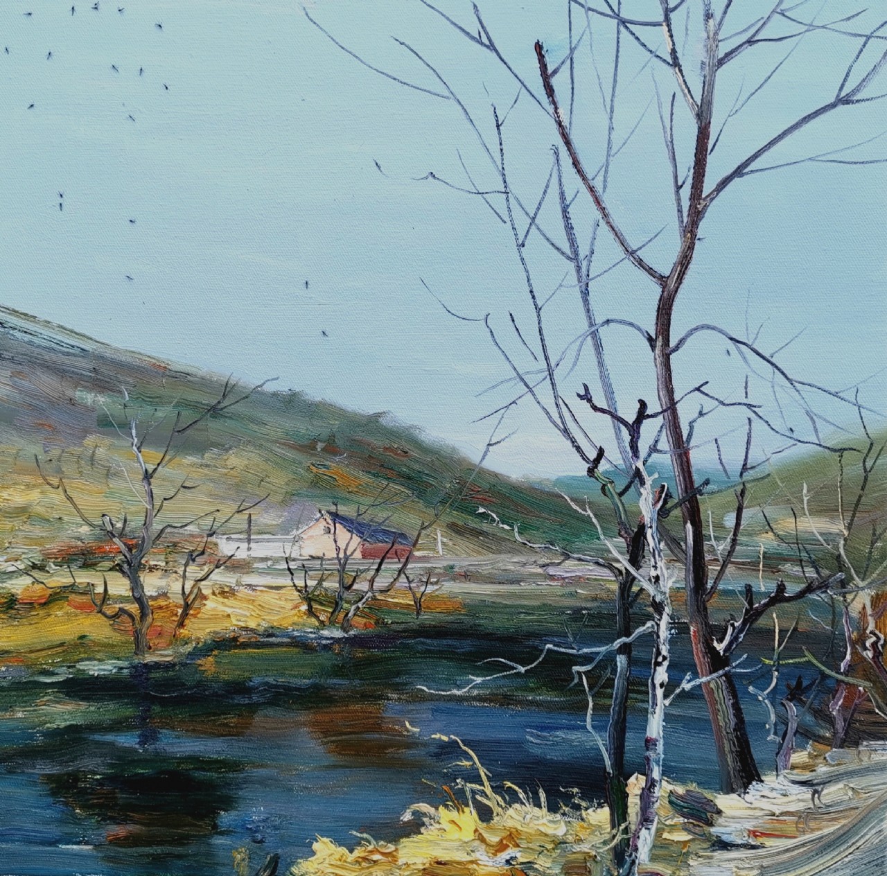 愛因斯坦說,只有把整個身心全部奉獻(xiàn)給自己事業(yè)的人,才能有希望成為名副其實的大師。 在繪畫過程中,一直養(yǎng)成全身心投入這一好習(xí)慣,努力在作品中注入自己的感悟與情感,幾年來一直堅持室外寫生,培養(yǎng)自己對物象的感知能力,努力賦予物象靈性和生命,嘗試著使作品營造出更加真實,更加空靈,更加內(nèi)斂的情境氛圍。