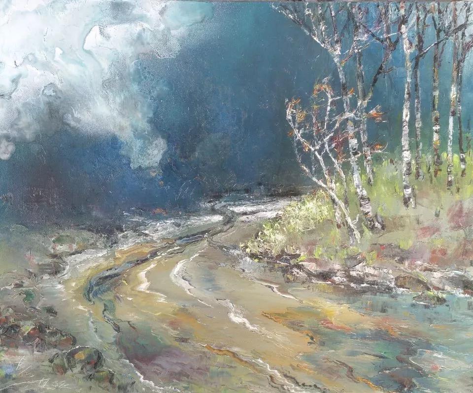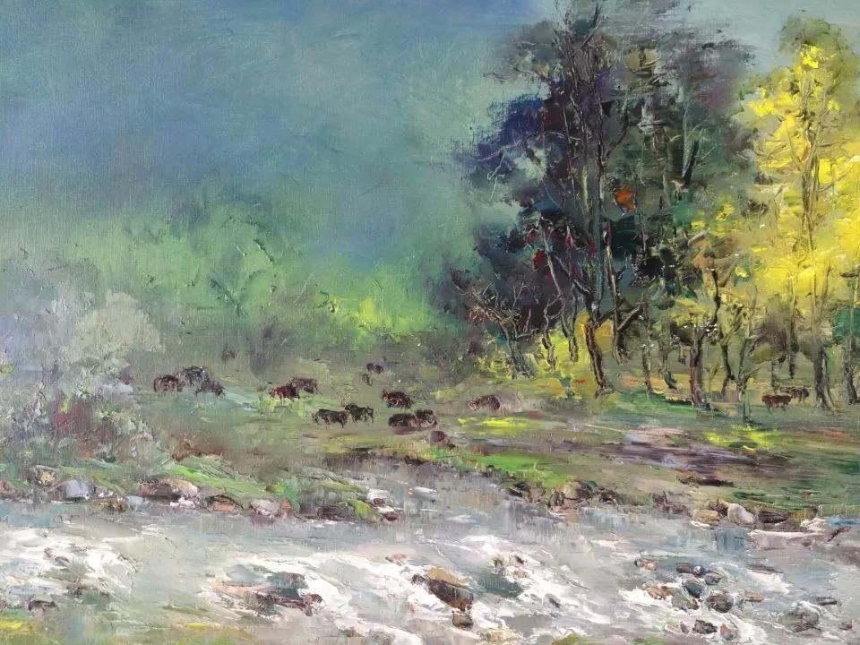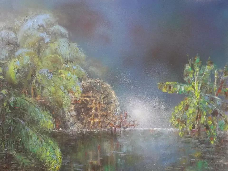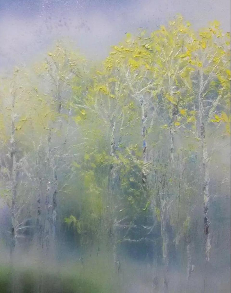 在創(chuàng)作上,余劍鋒很好的理解到了這一點(diǎn)。基于油畫的物質(zhì)基礎(chǔ)之上,利用獨(dú)有的技法打破了傳統(tǒng)西方繪畫嚴(yán)謹(jǐn)?shù)臉?gòu)圖法則、光影法則與色彩法則,進(jìn)而營造出了兼具婉約與豪放,惋嘆與蒼茫,真實(shí)與縹緲的東方意韻。