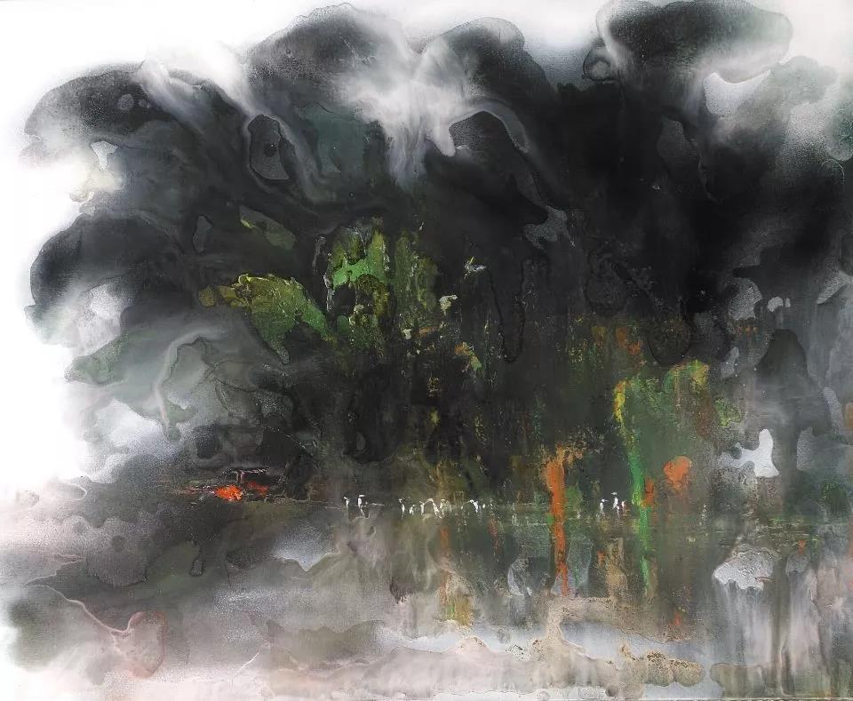 這種余劍鋒獨(dú)有的創(chuàng)作技法,本身即是偶然性。他是中國文人所向往的自由與不羈,所感嘆的人生無常與理想的無處安放,是內(nèi)心深處的不知該去向何方的迷惘。這樣的技法所帶給觀者的是看不清,道不明的奇幻畫面。這樣的畫面是何等之美,是何等之真實(shí),試問,誰又能真正地看清自己,看清這個(gè)世界呢?偶然性又恰似這個(gè)世界最本真的構(gòu)成。