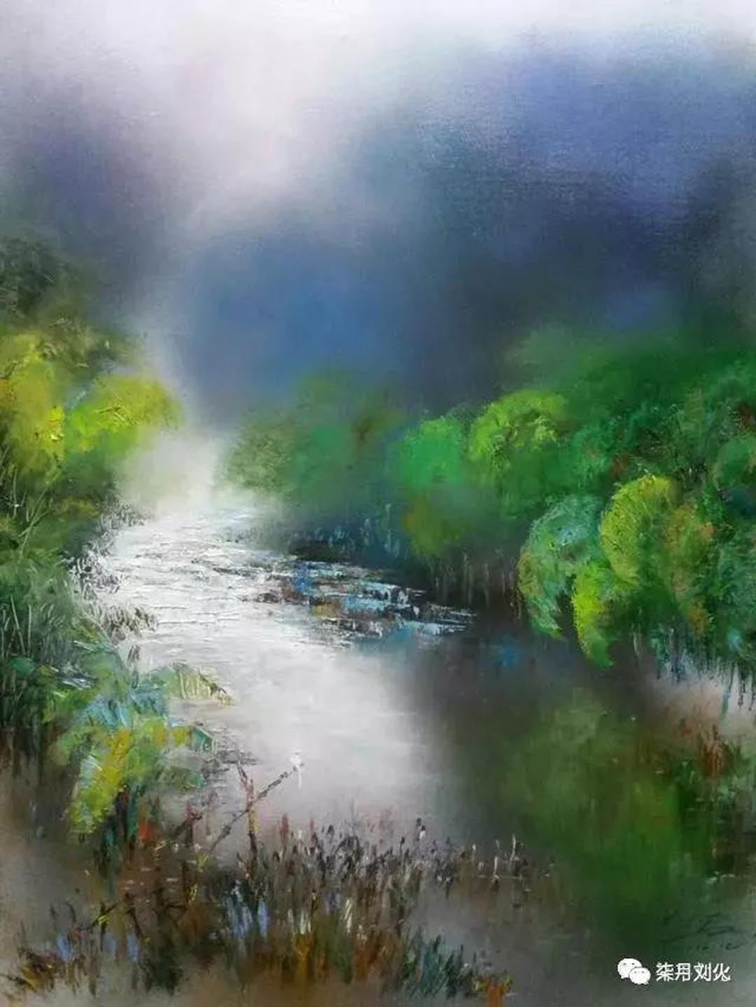 余劍峰用的是油彩和工具,以及非古典油畫工具,但其觀念,特別是在渲染氣氛和環(huán)境時(包括構(gòu)圖),用的則是中國畫的寫意。這就打破了藝術(shù)的壁壘,讓國畫的觀念甚至某些技法潺入到西畫里。從而造成了油畫中少見的空濛和迷離。這種空濛和迷離,放大了油畫的審美空間,同是將國畫的平面美感嵌入進油畫中的透視之中,進而形成透視與平面的雙重美學(xué)效應(yīng)。我們知道,物種的進化,往往是通過雜交來提供原動力,同時雜交所獲得的優(yōu)勢是其他方法所不能獲得的。這一雜交效應(yīng),成為余劍鋒近期畫作的特征。因為這樣的雜交,余劍峰式的畫作便極具個性。