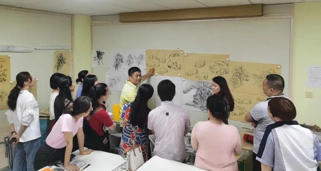 “江流不息,潤物無聲”,針對學員的基礎,導師給我們制定了詳細的教學計劃,確立以“德藝兼修,技法學養(yǎng)并重”的教學宗旨。研修班課程山水教學由宋元一路介紹下來而后再臨摹《龔賢課徒稿》入手學習積墨,結合《芥子園》構圖進行皴法訓練,進而學習石濤、陸儼少和黎雄才一系列作品,由淺入深,循序漸進,學員們穩(wěn)打穩(wěn)扎,按導師布置的作業(yè)量完成,學員們練就了扎實的基本功,學習取得超乎尋常的好效果。