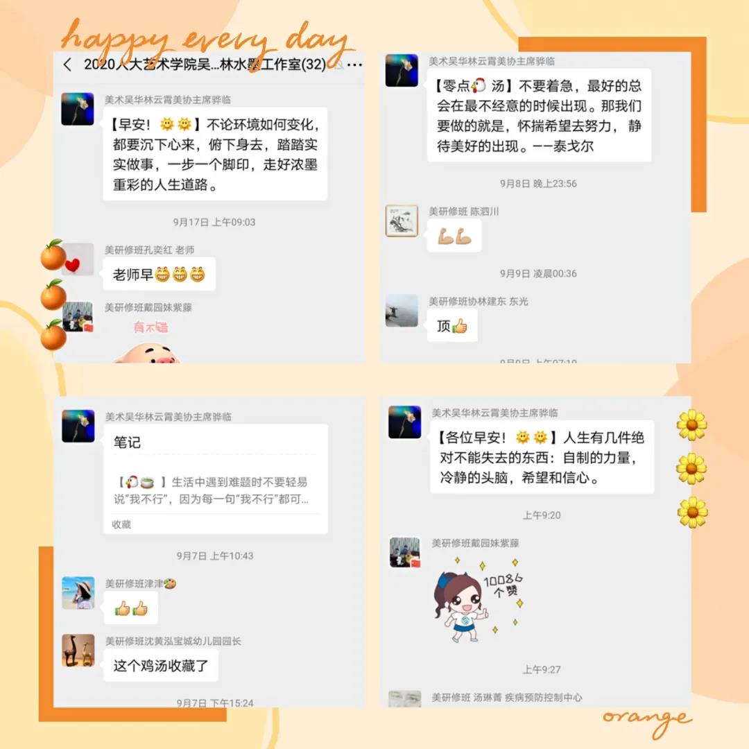 而今,臨摹、寫生、半創(chuàng)作我們交替進行,一邊充實著自己,一邊學著走自己的路。風雨兼程,我們前進的腳步不停。導師發(fā)在群里激勵的話語也不斷地指導我們繼續(xù)前行!