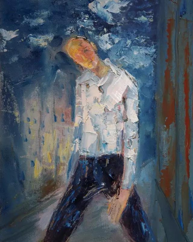 《夜-獨行者》油畫