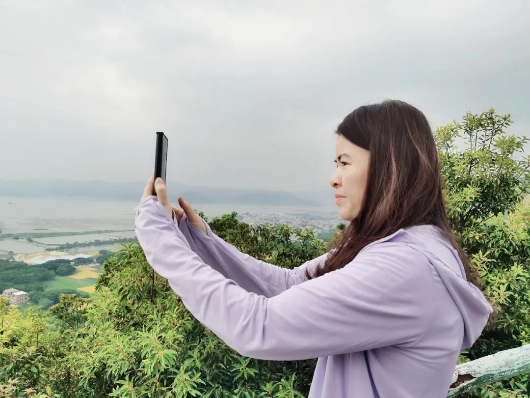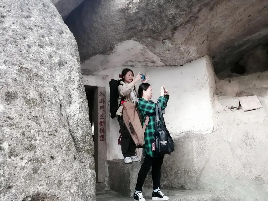 海月巖是漳浦縣著名的奇巖風(fēng)景,具有悠久的歷史。海月巖風(fēng)景天然秀麗,清靜幽雅,其海月巖寺大殿構(gòu)筑精巧,神工鬼斧,殿頂是由整塊百噸花崗巖巨石板構(gòu)建,渾然天成。海月巖背靠金剛山,面朝東山灣,依山傍水,怪石嶙峋,巖障環(huán)繞,別有洞天,芳草綠樹,凄凄蒼蒼,登高望遠(yuǎn)一覽秀色。阡陌交錯(cuò)的道路、星羅棋布的田園屋舍、煙波浩渺的大海叢林以及屹立于江流中著名的石礬塔,盡收眼底,儼然一幅郁郁蔥蔥、美麗動(dòng)人的風(fēng)景畫,是歷代文人墨客悠游駐足之地。全體學(xué)員登高望遠(yuǎn),看到如長龍臥波般的漳江灣特大橋消失在大陸的另一端,此情此景,無不嘖嘖稱贊,更有感于這幾年的家鄉(xiāng)巨變。