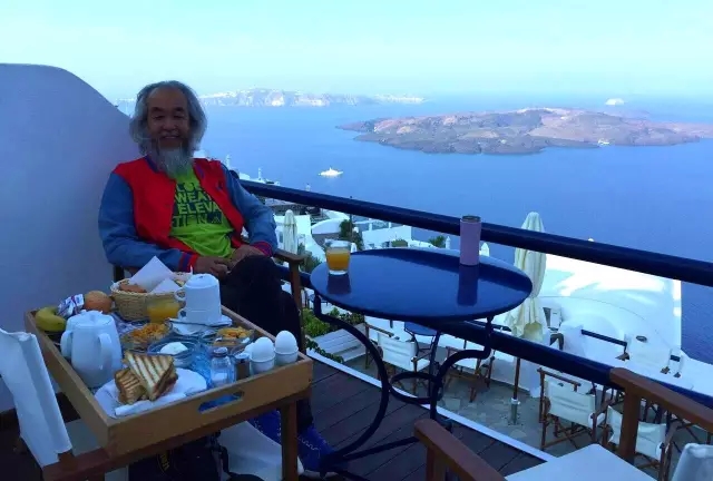 希臘是西方文明的搖籃,也是我仰慕已久的藝術圣地。到達希臘的首站就選擇了風光旖旎的圣托里尼島,如果說愛琴海的基克拉德斯群島是一串散落在愛琴海里的珍珠項鏈,那么圣托里尼就是項鏈墜子上那顆最耀眼的鉆石。世界上最美的藍色都聚在了這里,蔚藍的愛琴海伴著普藍頂教堂和白色的建筑群中的藍色門窗,構成一幅寧靜的藍白畫卷,她賦予藝術家以豐富的創(chuàng)作靈感。這是一個即讓你沉醉、又讓你怦然心動的地方。住在火山巖峭壁上的洞穴酒店,可以欣賞到世上最美的日出和日落,看到最壯闊的海景……圣托里尼已成為人們的綺夢之地。