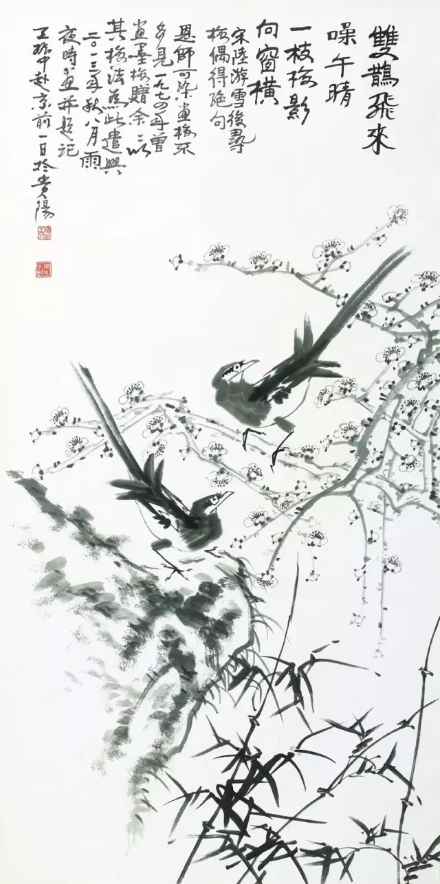 王振中2013-雙鵲飛來(lái)噪午晴-68x137cm