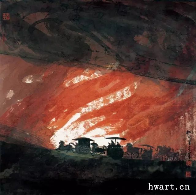 大部分“融合派”畫家在回歸傳統(tǒng)的階段也都跳出了文人書畫傳統(tǒng)和院體藝術(shù)傳統(tǒng),周韶華便是這種傾向積累到一定程度的產(chǎn)物。周韶華亦屬“融合派”,他不同與其他“融合派”畫家的獨(dú)特性在于他不是從西畫入手而是從中國大傳統(tǒng)入手尋求中西融合,從而成了一個(gè)轉(zhuǎn)折性人物?!耙詵|方融匯西方”, 是周韶華的獨(dú)特坐標(biāo)。