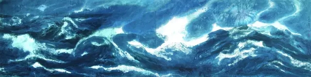 借著這次全集出版的機(jī)會(huì)我才真正了解到,周韶華迷戀新局實(shí)乃出于本性,這突出表現(xiàn)在“三大戰(zhàn)役”尚未結(jié)束,他又走向了新的創(chuàng)作疆域。周韶華于2007年下半年創(chuàng)作了“大海之子”系列,次年在武漢舉辦了“周韶華藝術(shù)三部曲――黃河、長江、大?!彼囆g(shù)展,為“三大戰(zhàn)役”畫了句號(hào)。而在此前后,2002年創(chuàng)作了“走出仰韶”系列,2003年創(chuàng)作了“夢(mèng)溯仰韶”系列,2004年創(chuàng)作了“漢唐雄風(fēng)”系列,2006年創(chuàng)作了“荊楚狂歌”系列,2009年80高齡的周韶華又創(chuàng)作了“遙望星空”、“國風(fēng)歸來”兩個(gè)系列并擴(kuò)充了“夢(mèng)溯仰韶”系列。