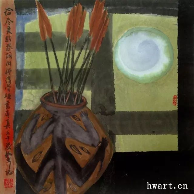 周韶華是位理論著述頗豐的藝術(shù)家,其中最有影響力和最具學(xué)術(shù)價(jià)值者,一是“隔代遺傳”論,即“咬破文人畫的繭子”,“跳過元明清以近的傳統(tǒng),把借鑒的觸角伸向宋代和魏晉六朝以遠(yuǎn),馳騁于漢唐秦楚,上溯春秋周殷,直至仰韶文化的活水源頭”; 二是“橫向移植”論,即積極借鑒國外的、民間的、姐妹藝術(shù)中的一切于已有益的因素;三是“全方位觀照”論,即“傳統(tǒng)與現(xiàn)代契合,東方與西方融匯”, “天地人融貫一體,過去、現(xiàn)在、未來相聯(lián)”。 而與三論密切呼應(yīng)的,便是廣義傳統(tǒng)觀。