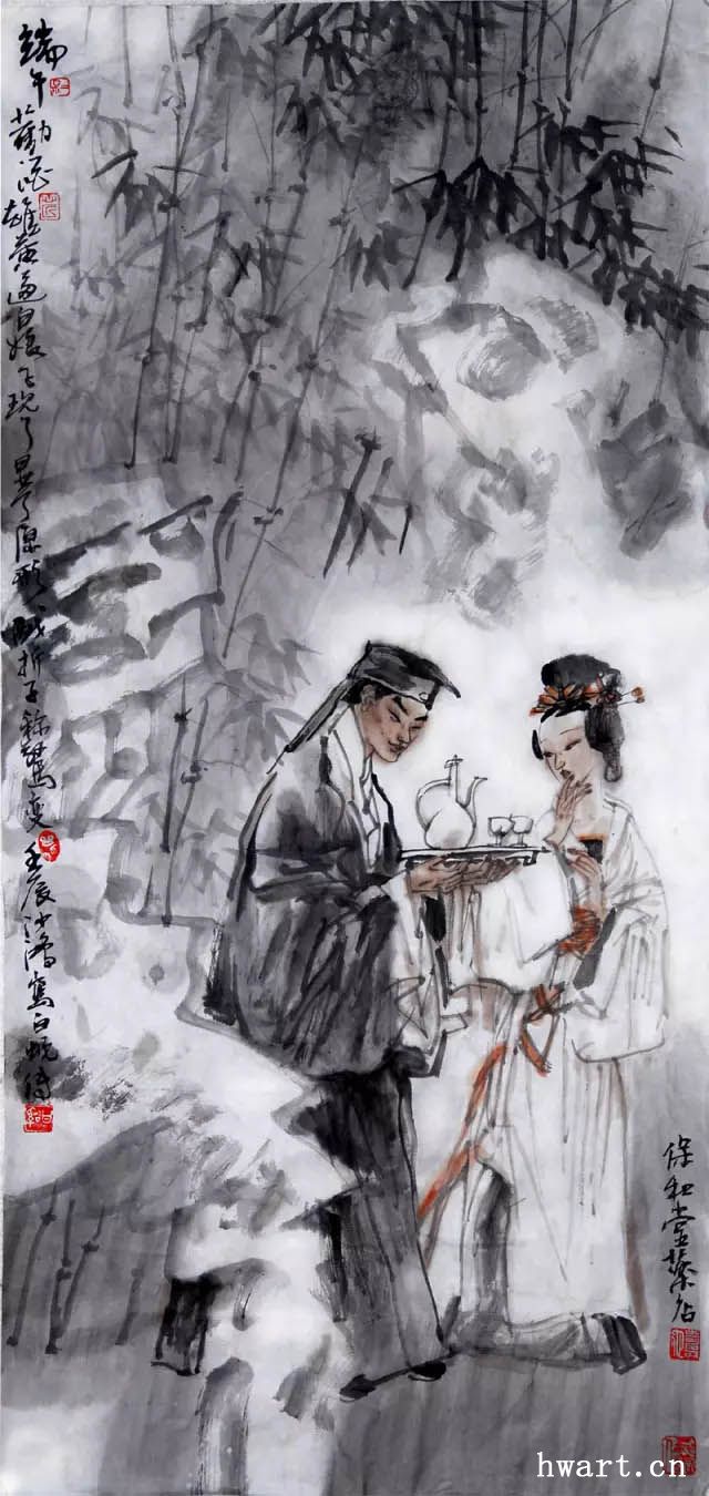 將中國傳統(tǒng)書畫的理念、筆墨技法與有點(diǎn)科學(xué)意味的寫實(shí)人物畫技術(shù)結(jié)合很像走鋼絲。筆墨一瀟灑,人物易走形;形象一準(zhǔn)確又約束了筆墨發(fā)揮。只有具備扎實(shí)的造型功底,方可將人物化作胸中成竹,才有可能循著文人畫藝術(shù)的特點(diǎn),講究書法運(yùn)筆,融合花鳥畫和山水畫的表現(xiàn)手法,重視磨練“筆性”,欣賞筆端上流露的書卷氣和技術(shù)高度。使畫作不失于近似速寫的草率,不掉入為了塑造的呆滯,而留下筆的神氣、墨的韻味和筆筆生發(fā)開來的意外效果。