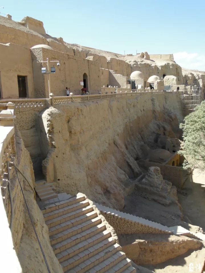 柏孜克里克千佛洞上層為洞窟,下層為地面寺院