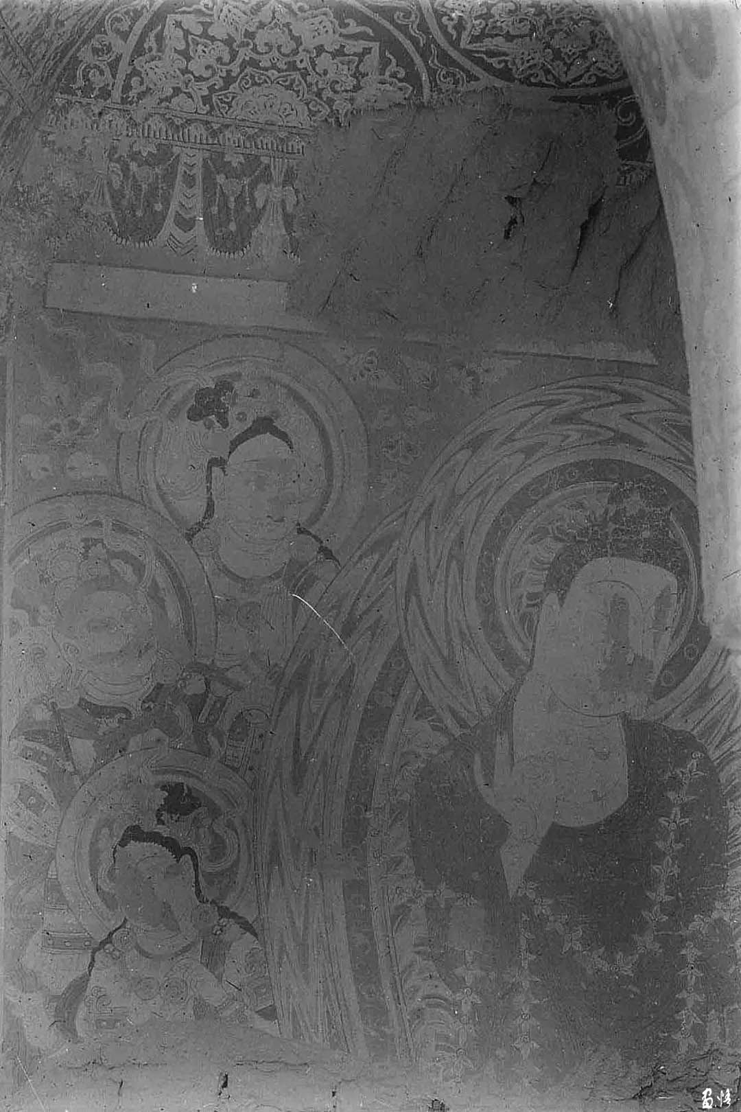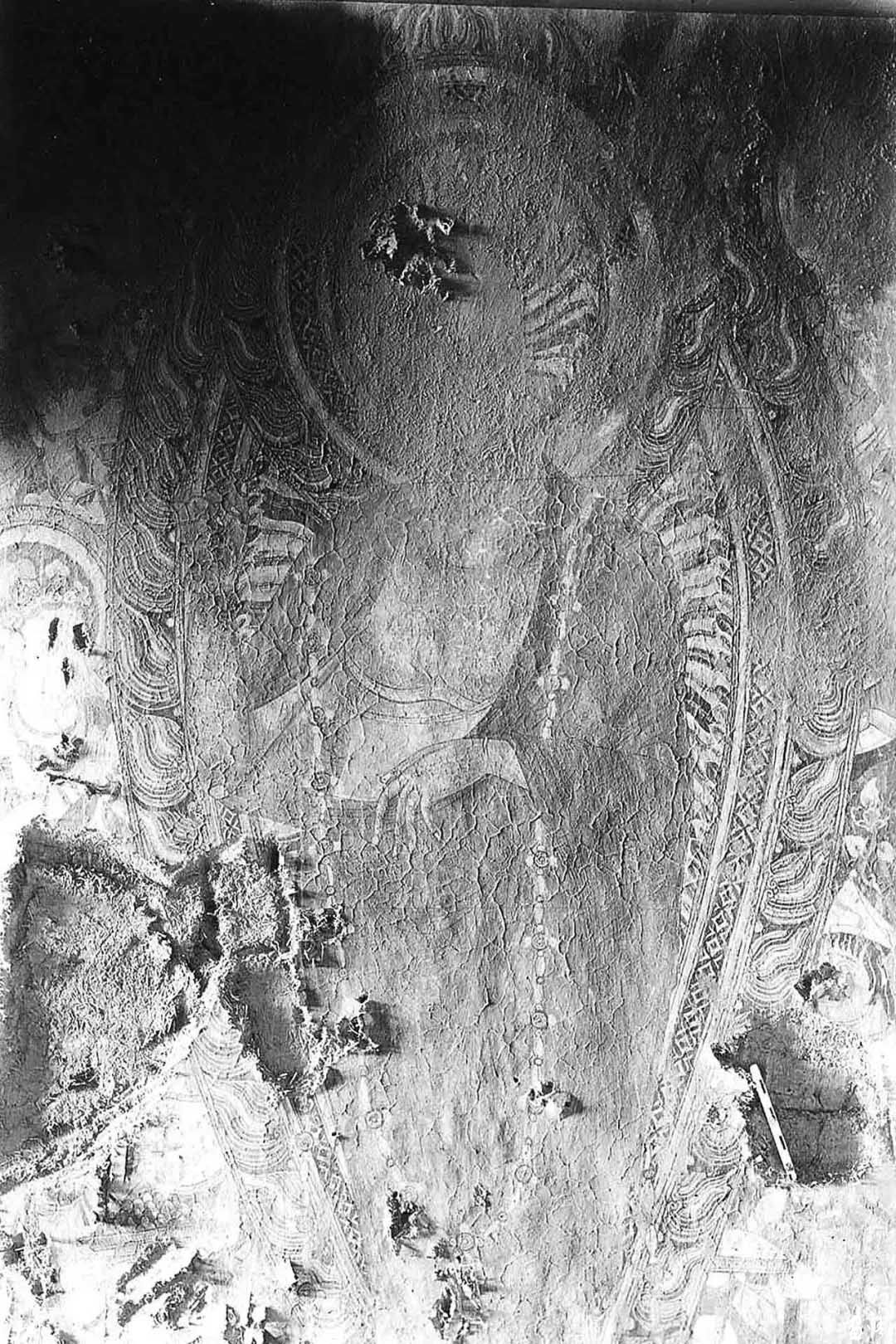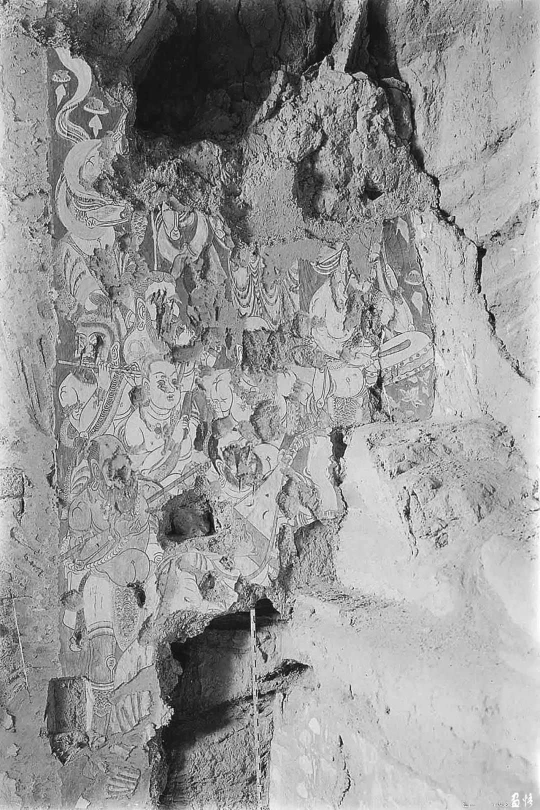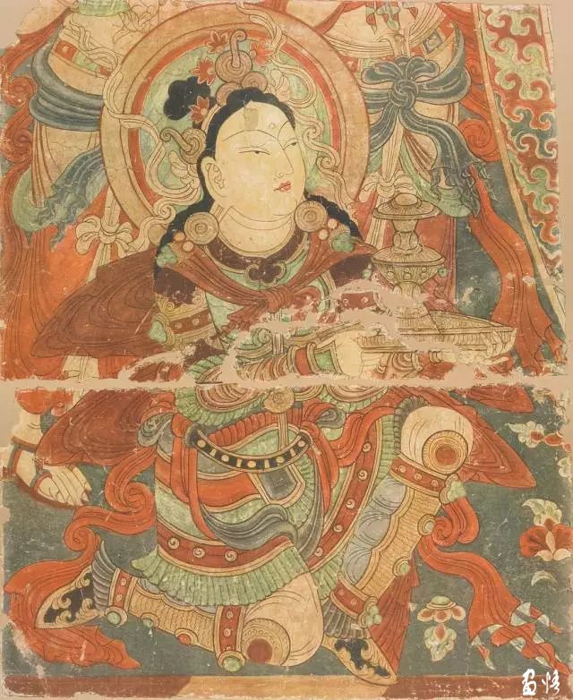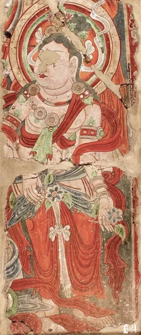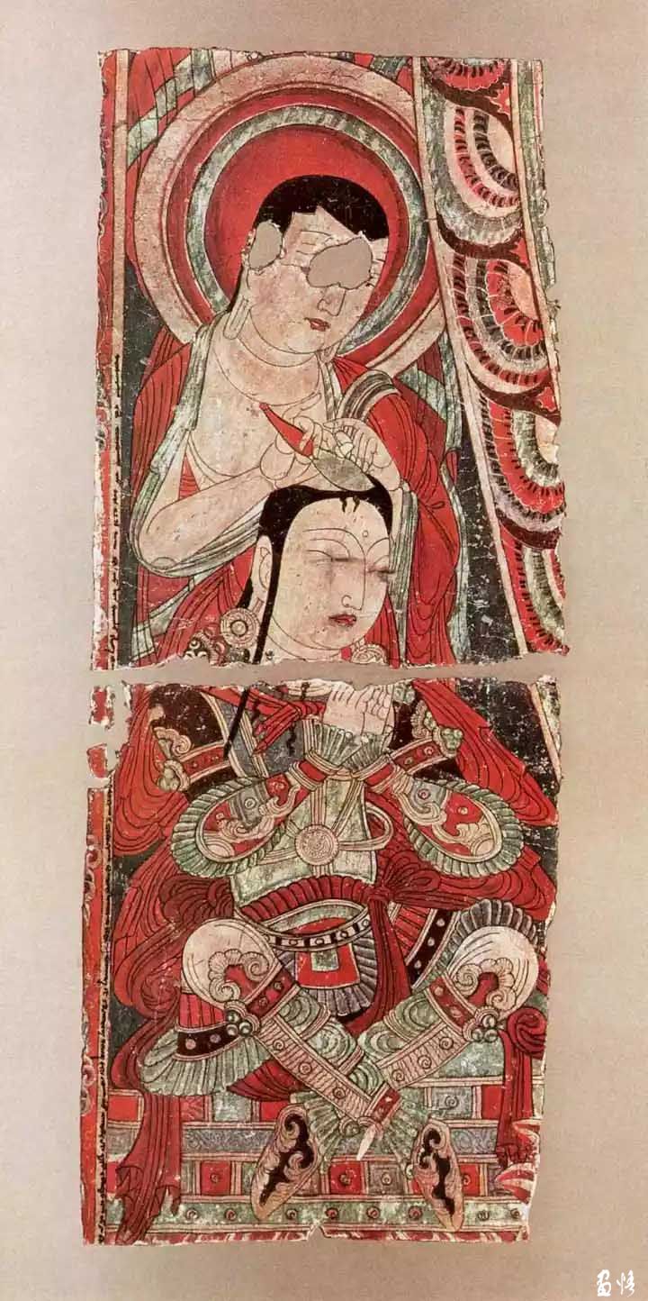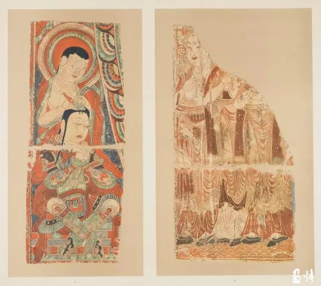 隨即他們?cè)谝粋€(gè)洞窟中,發(fā)現(xiàn)繪滿(mǎn)色彩的壁畫(huà),有諸佛和各種姿勢(shì)的菩薩,有的合十、有的散花、有的奏樂(lè)。天人的舞姿、魔鬼的兇相,色彩、用筆都有很高的造詣。還有泥翅佛像,對(duì)歐洲人盜取壁畫(huà)的方式氣憤之余的日本人也取出了特制的“狐尾鋸”切割了足以欣賞的壁畫(huà)7塊,獲得泥塑佛像7身。